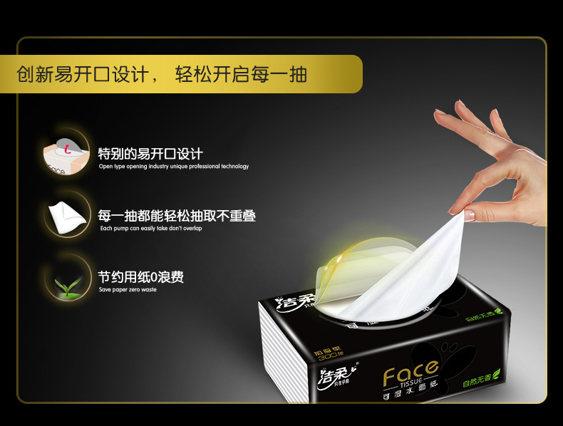 潔柔抽紙黑face古龍水香餐巾紙可濕水紙巾L碼150抽家用大包面巾紙