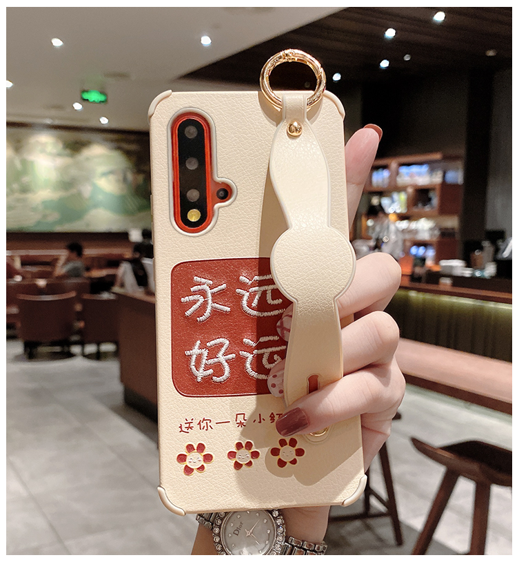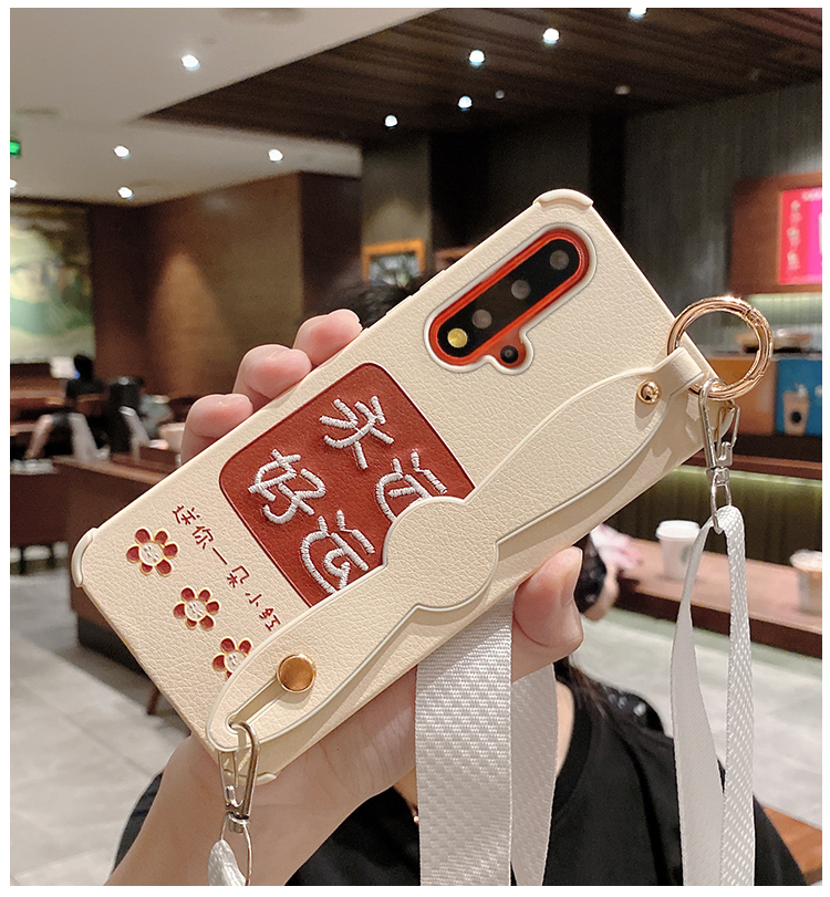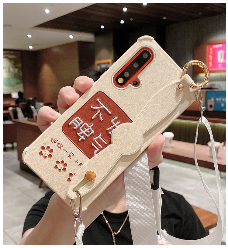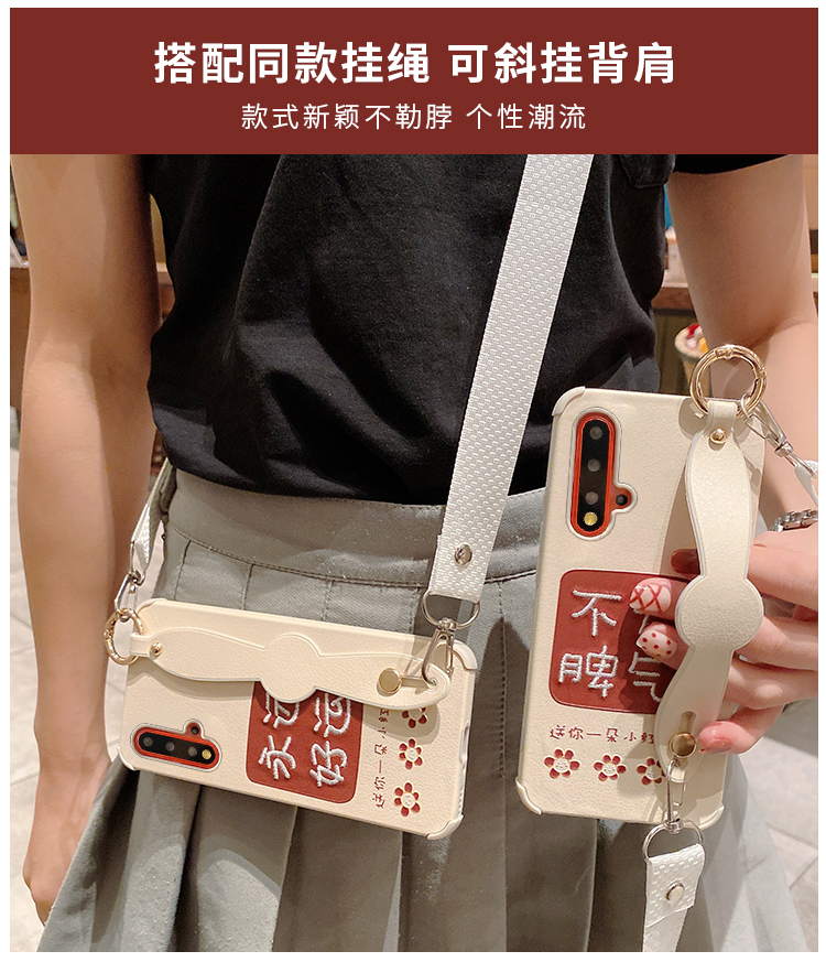 適用于永遠好運華為nova5手機殼腕帶nova5pro刺繡硅膠套nove4軟殼5i防摔4e全包5irpo外殼por女新款網紅斜跨