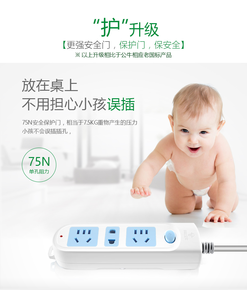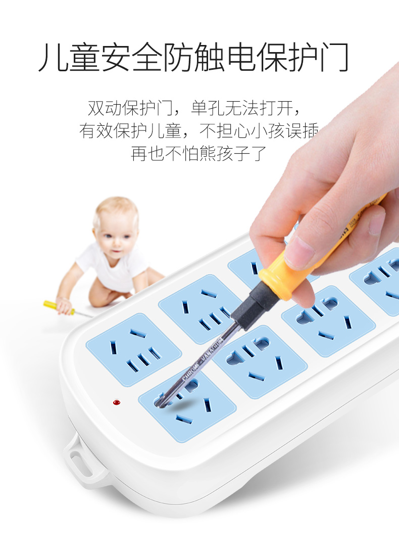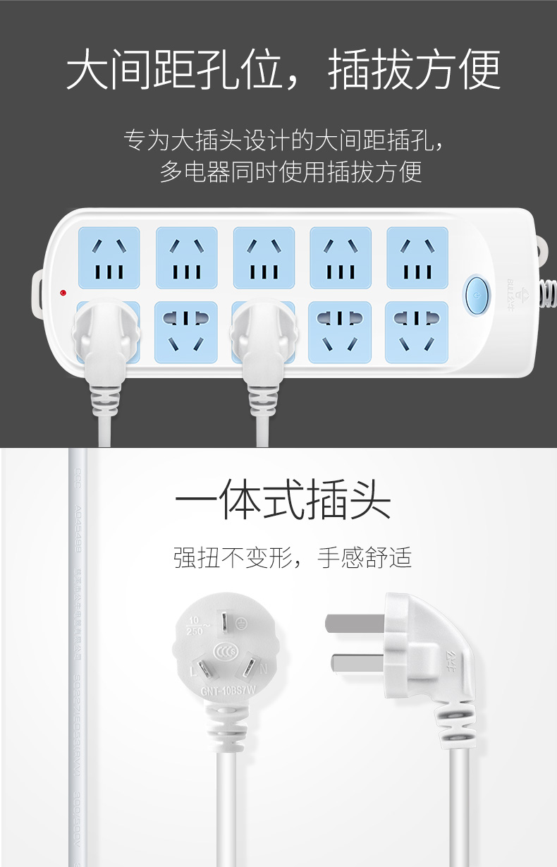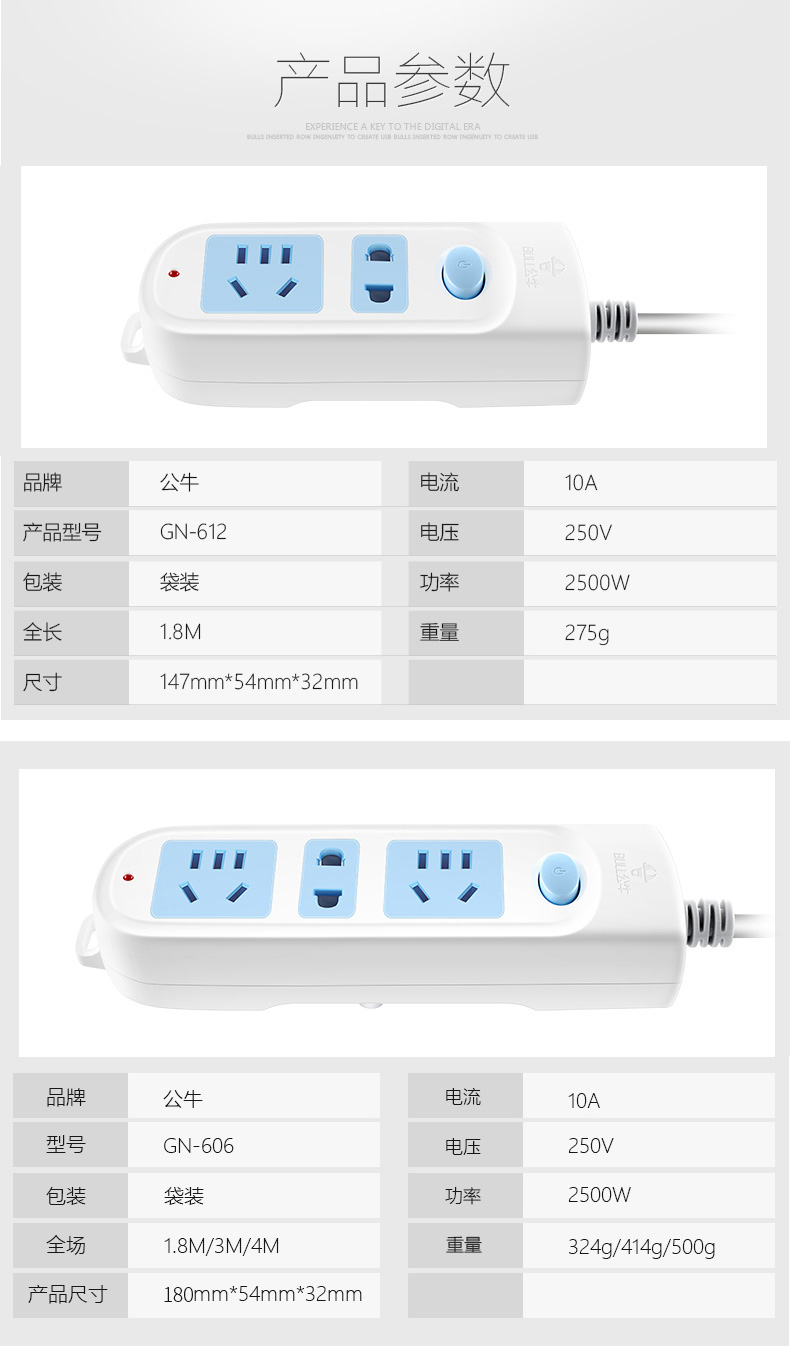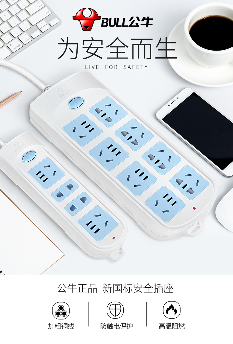 公牛插座帶線插排插座面板長線家用多功能獨立開關電插接線板藍白