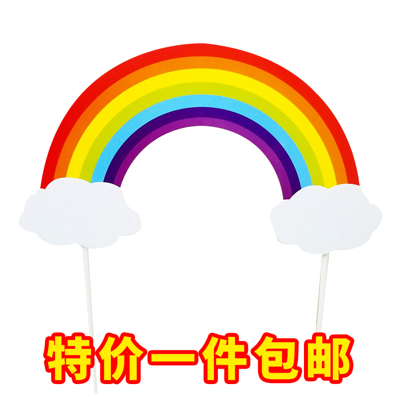 包郵大彩虹烘焙生日蛋糕擺件插旗
