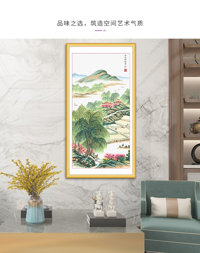 KS十字繡2023新款田園風景柳樹客廳書房非滿繡掛畫手工繡春風拂柳