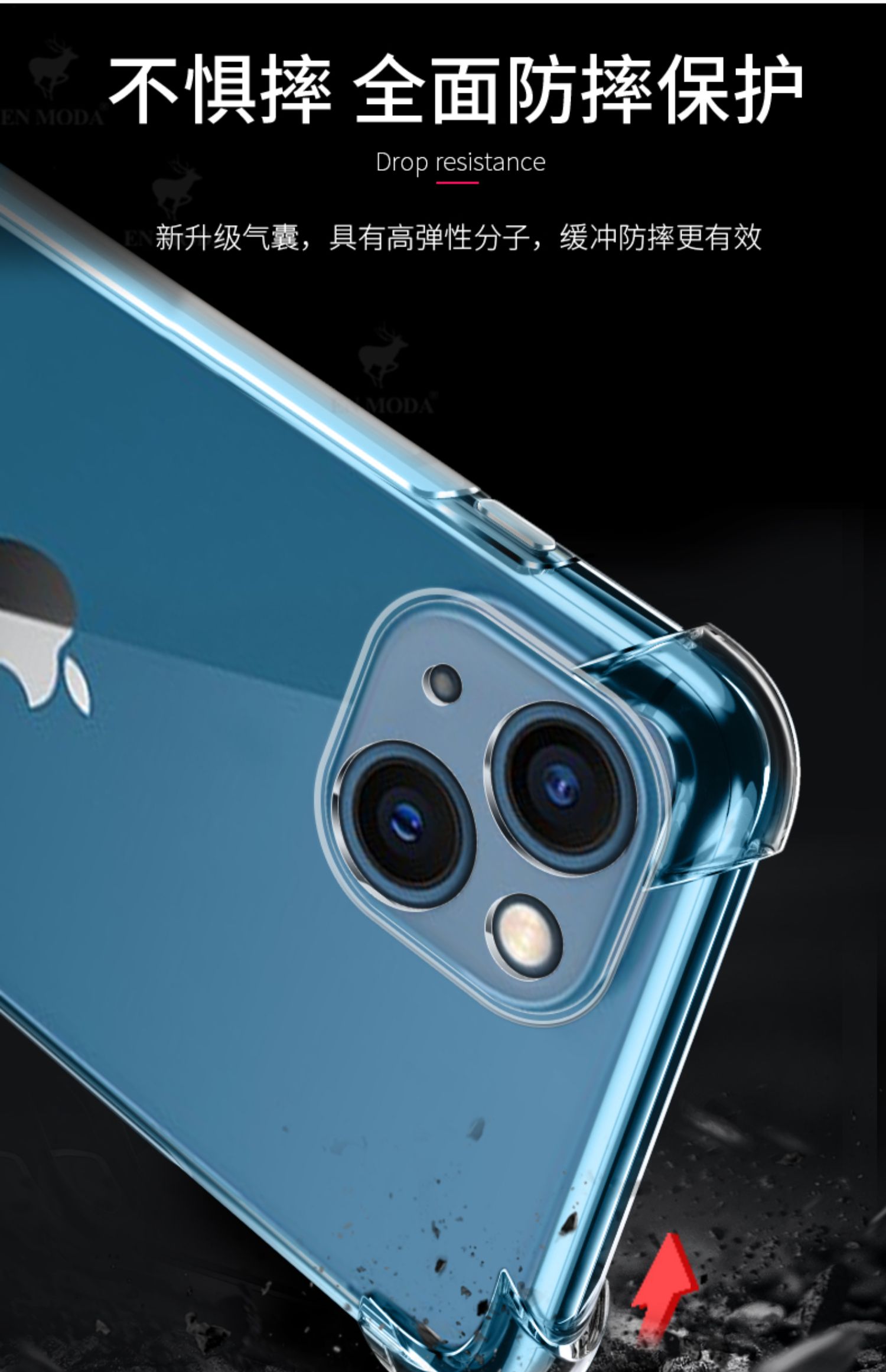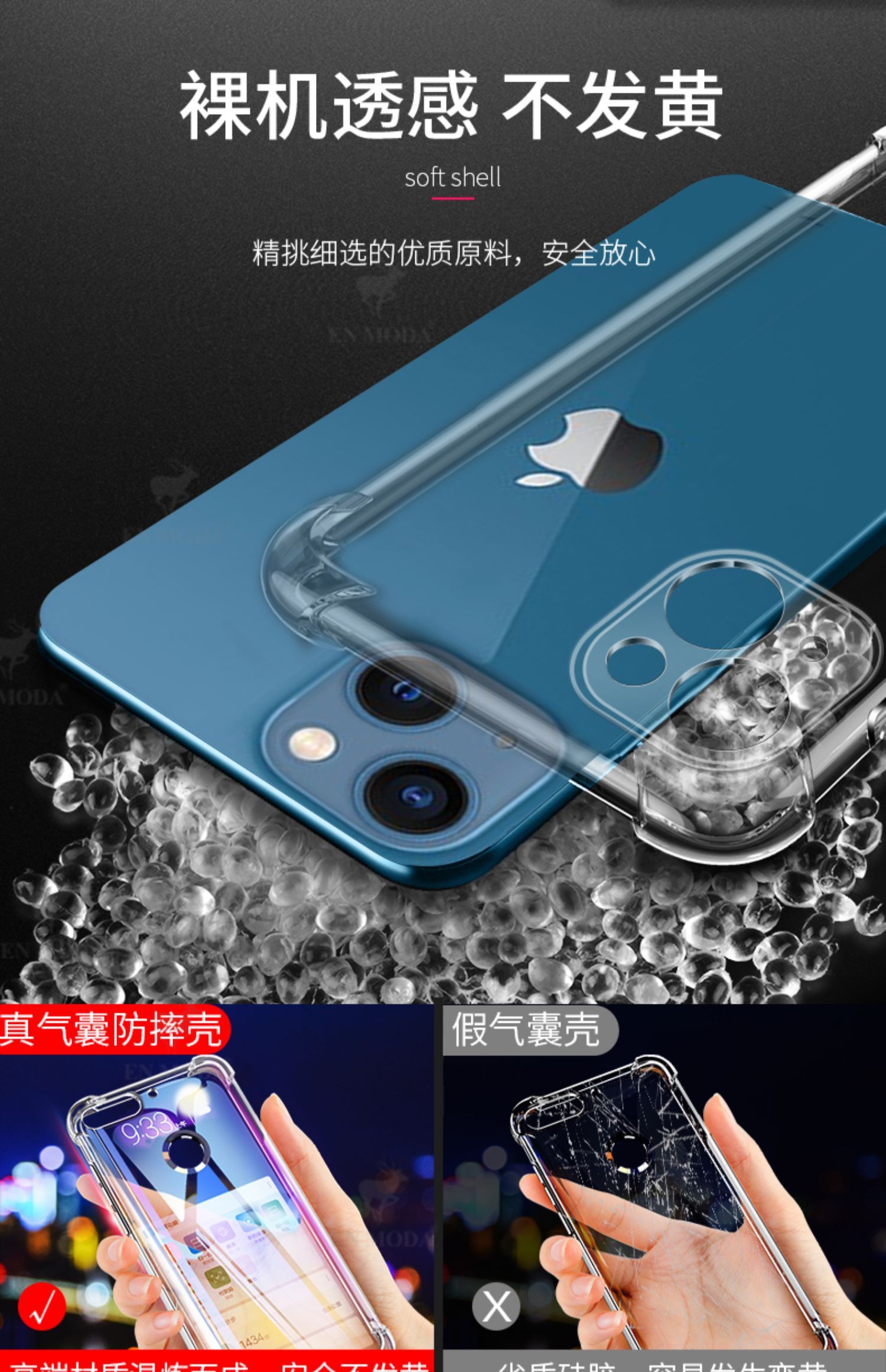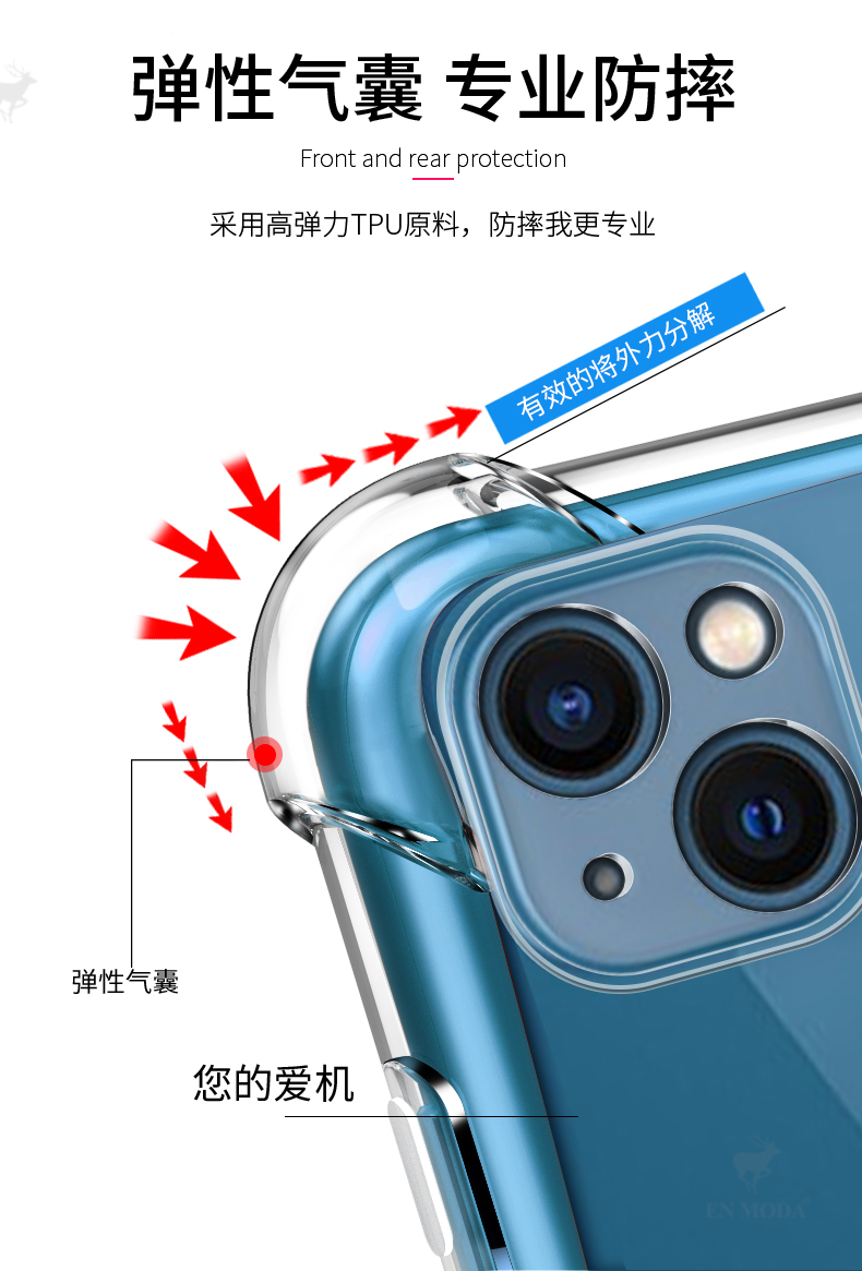 適用蘋果13防摔爆新款透明四角氣囊