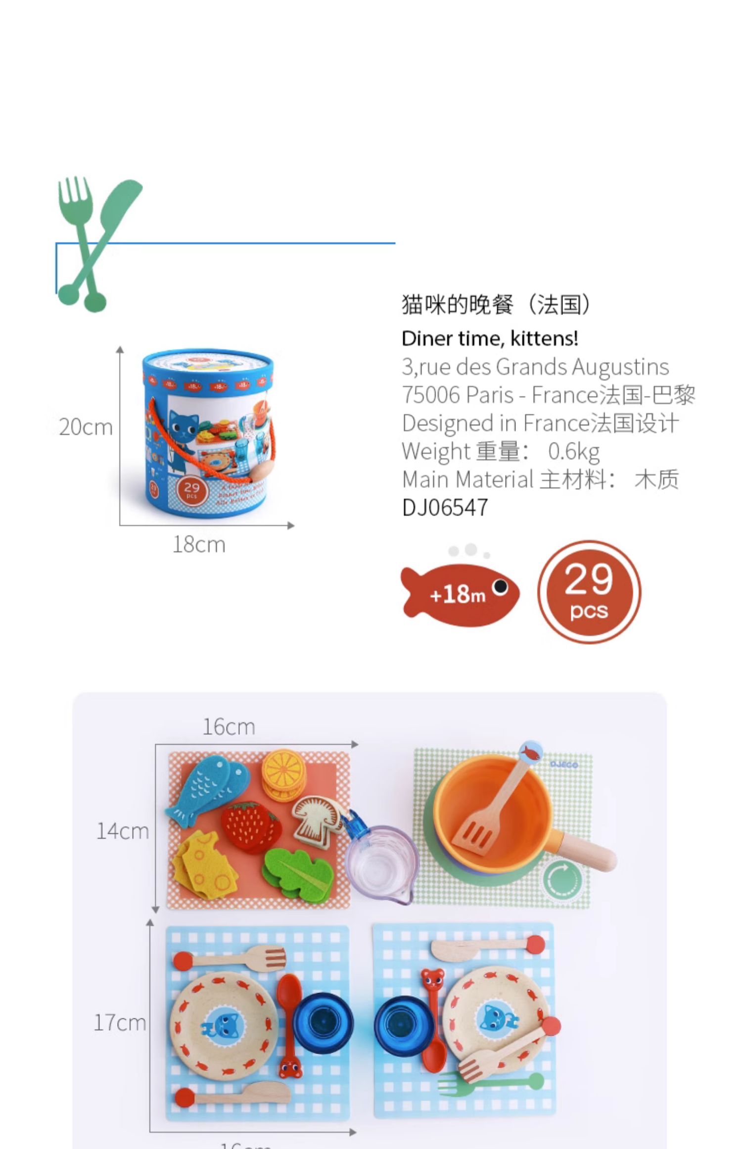 djeco兒童過家家廚房貓咪的晚餐套裝情景角色扮演玩具女孩2-3歲
