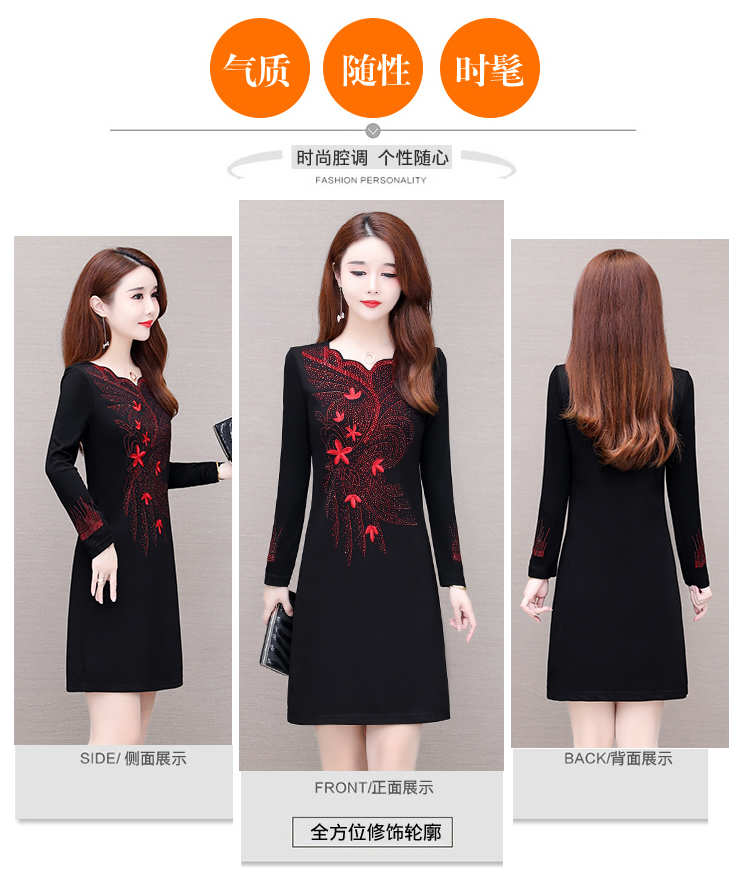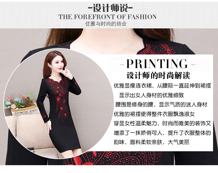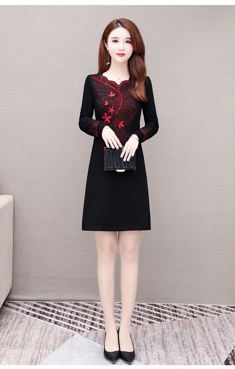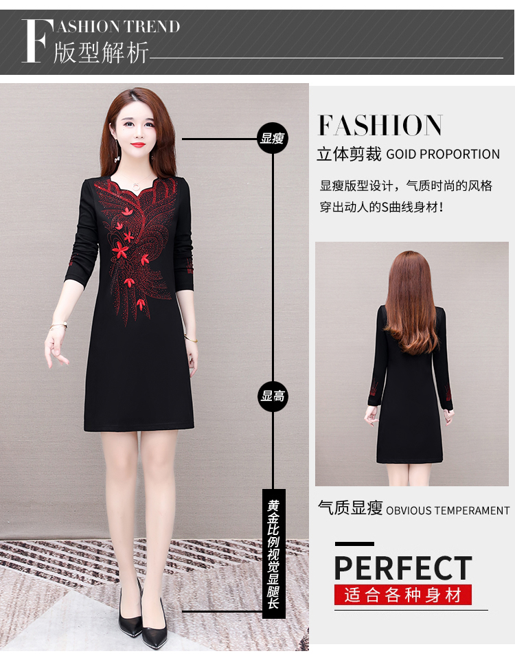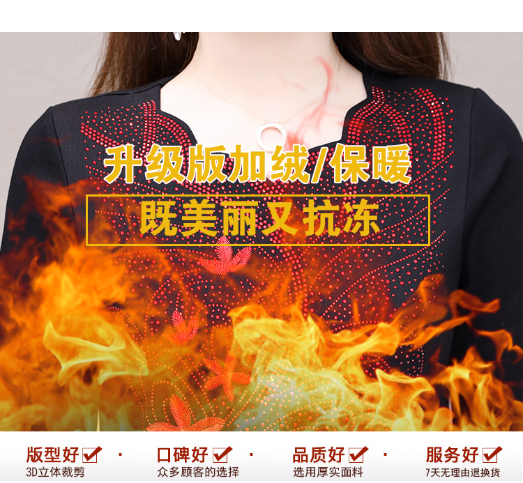 2023秋冬新款加絨加厚媽媽打底連衣裙洋氣刺繡燙鉆中長款遮肚裙子