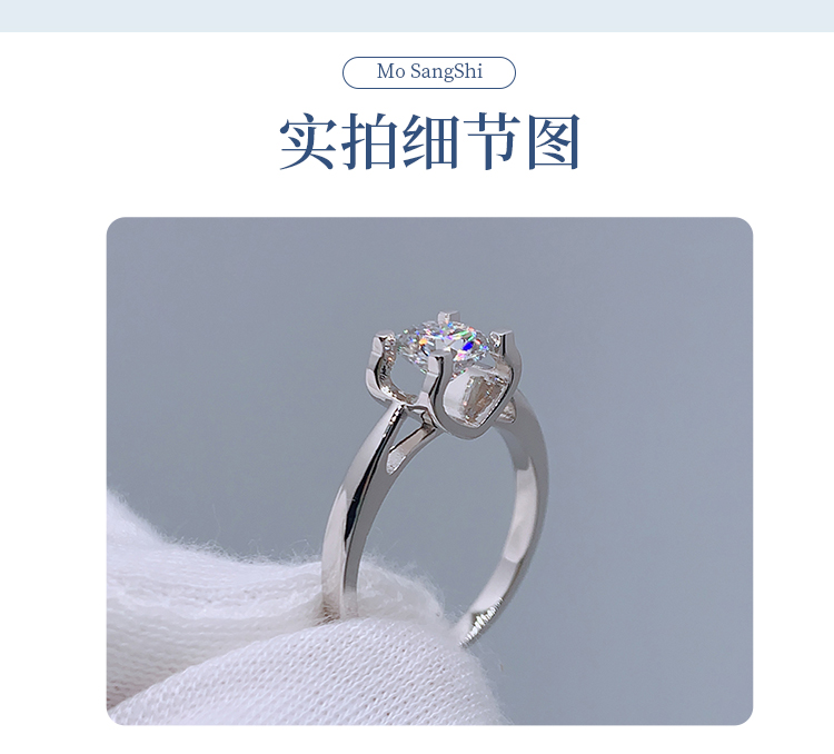 18K白金進口莫桑石鉆戒牛頭款情侶戒指女定制婚戒高檔首飾送禮