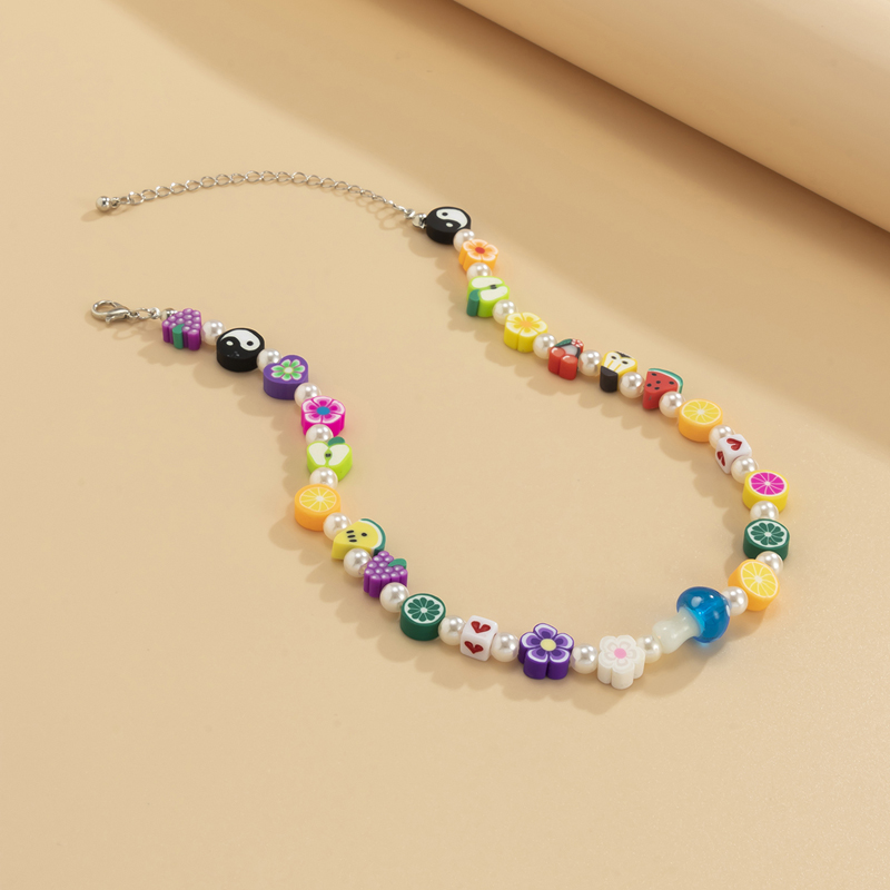 彩色軟陶水果花朵米珠夏季ins項鏈