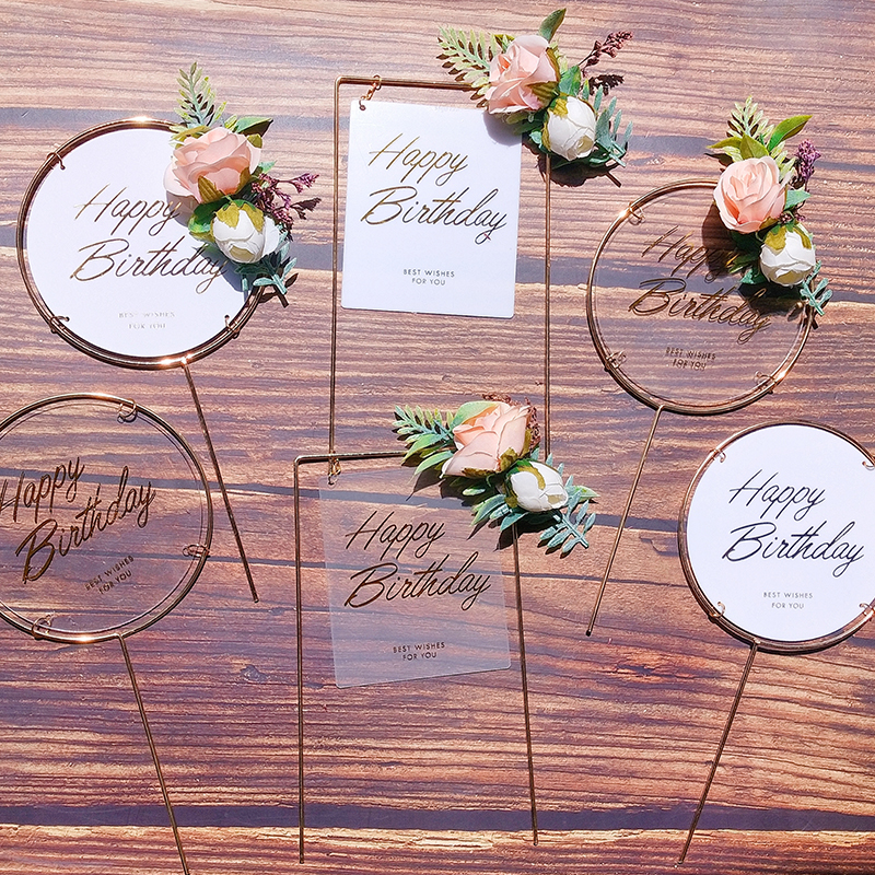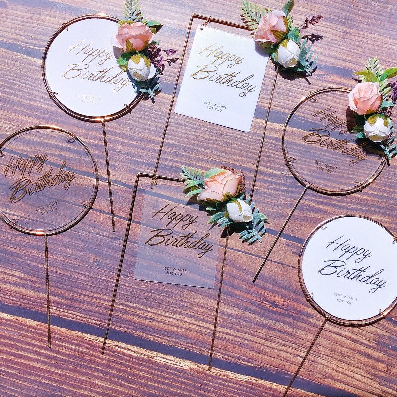 ins網紅鐵藝花朵蛋糕裝飾唯美燙金透明亞克力插牌生日甜品臺插件