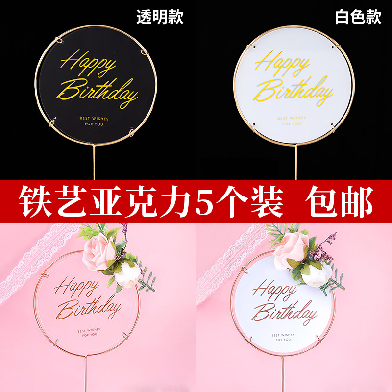 網紅蛋糕裝飾鐵藝燙金白亞克力圓牌方牌簡約英文字母生日快樂插件