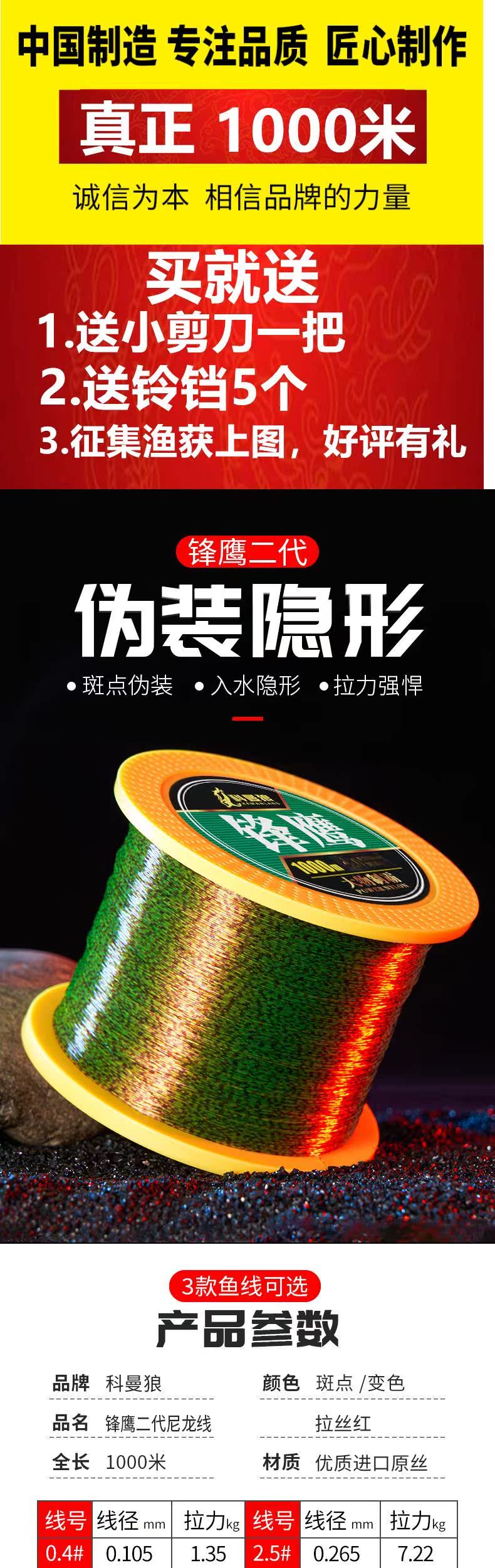 科曼狼鋒鷹二代大物魚線主線子線1000米海釣遠投尼龍線海竿路亞線