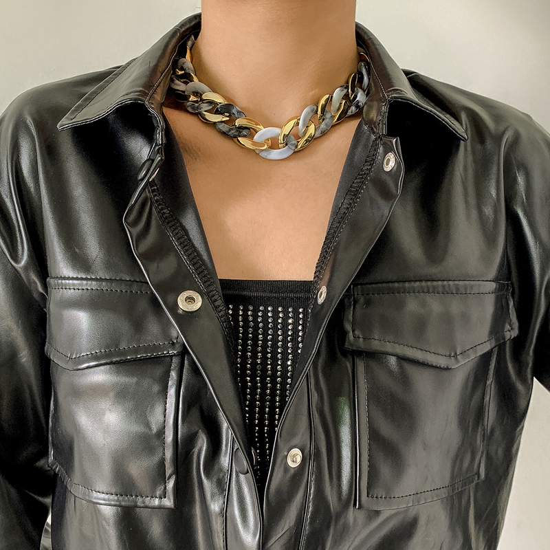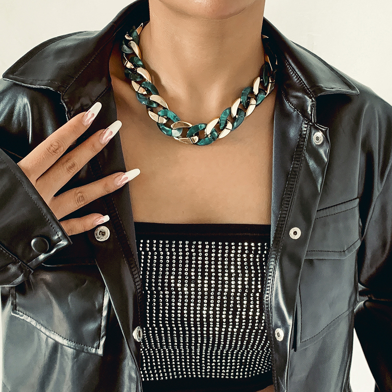 亞克力粗鏈條項鏈女 歐美嘻哈夸張小眾設計土酷千禧軟妹裝飾頸鏈