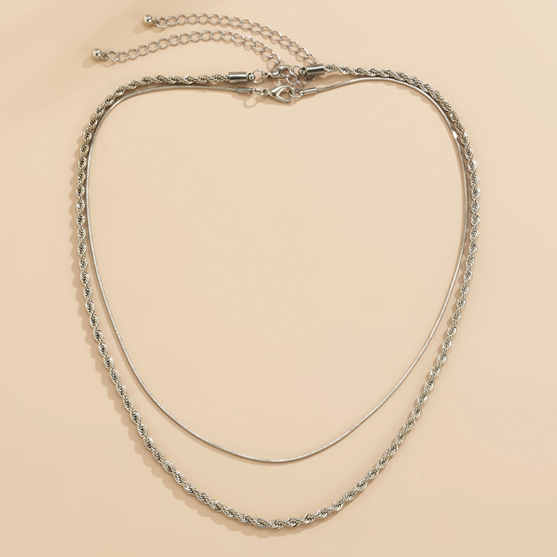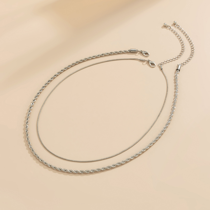 2件套麻花鏈方蛇鏈項鏈套裝 歐美時尚簡約網紅氣質疊戴雙層鎖骨鏈