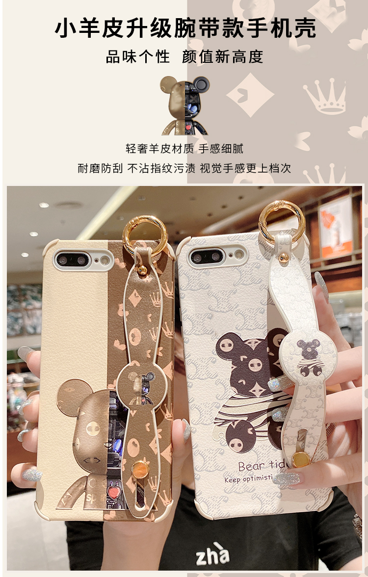 適用于蘋果X手機殼潮牌暴力熊iPhone8Plus硅膠套腕帶斜跨Xsmax軟殼全包7P防摔外殼6S情侶款Xr女款網紅XS新款