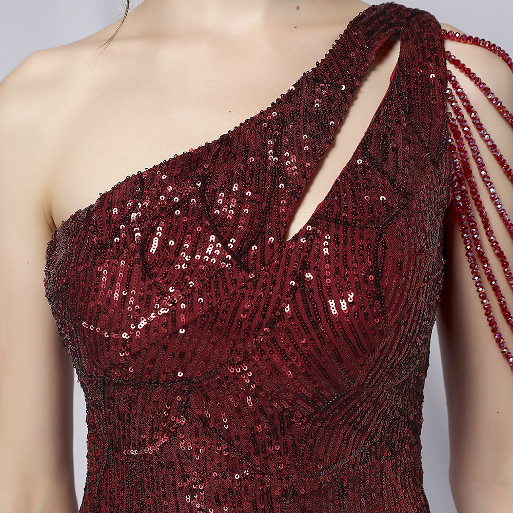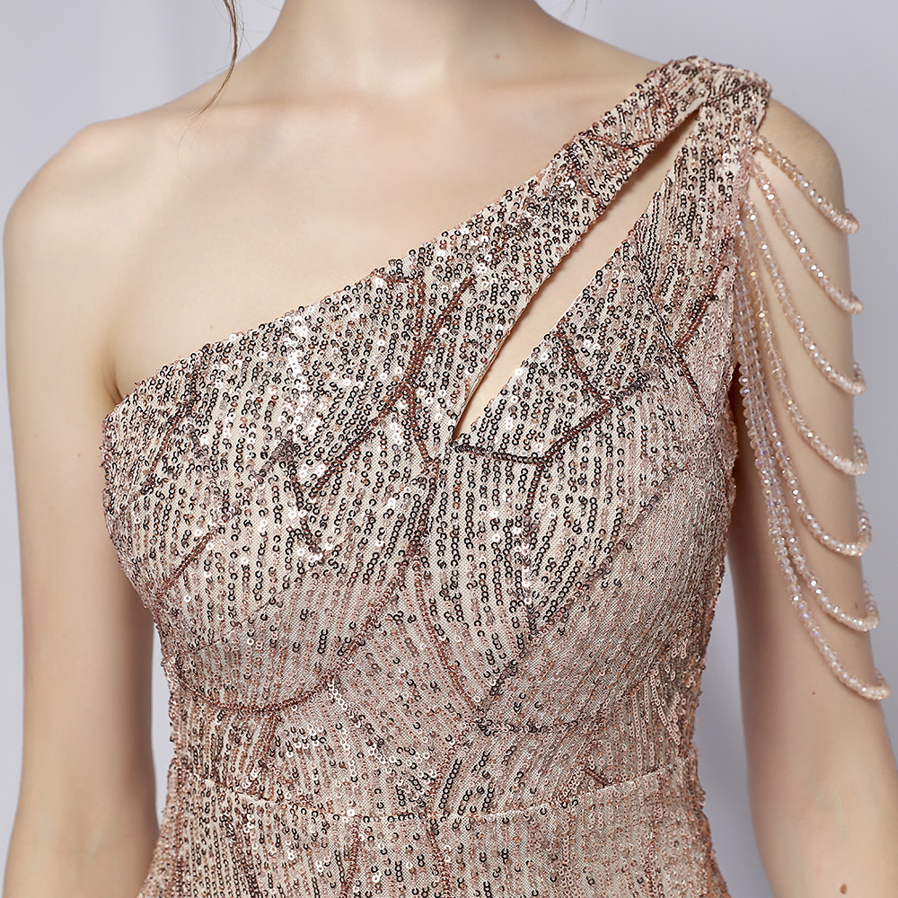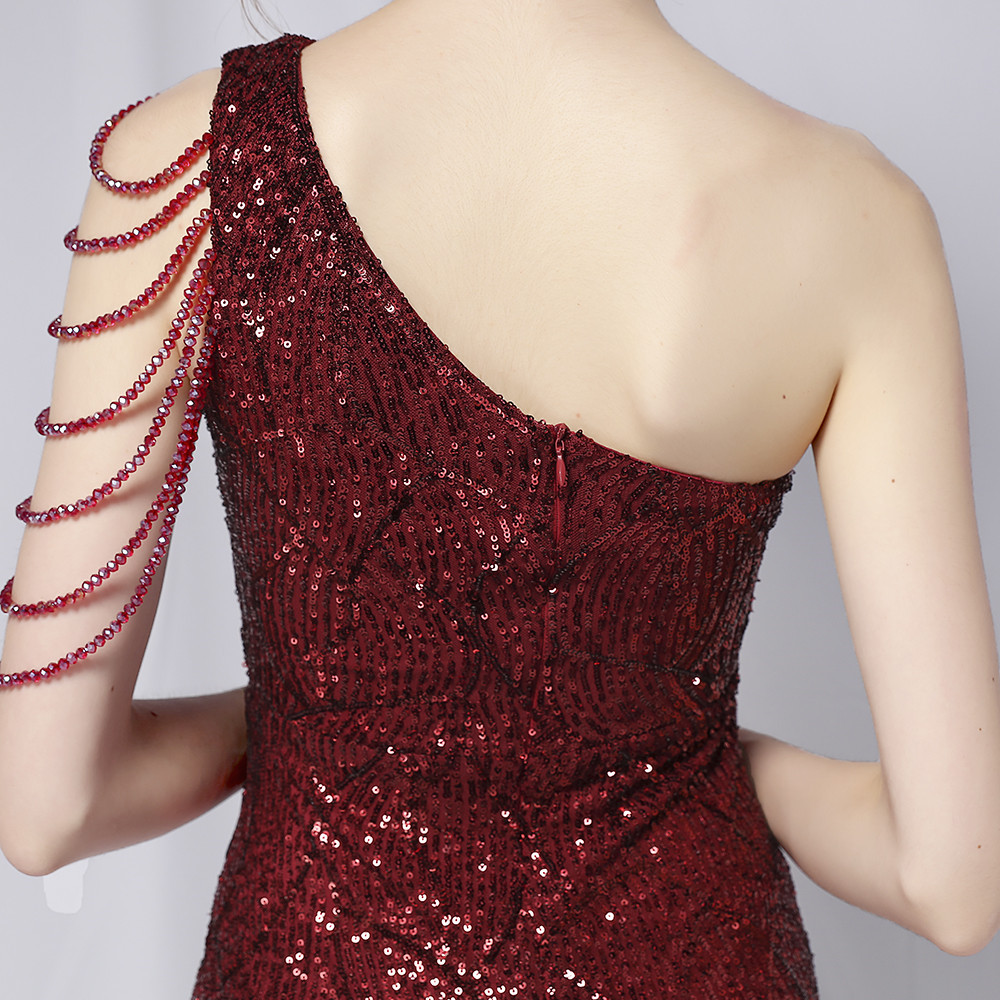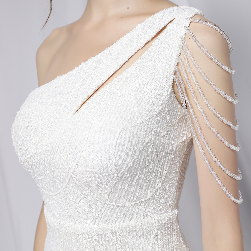 小眾手工珠片單肩吊帶名媛魚尾裙