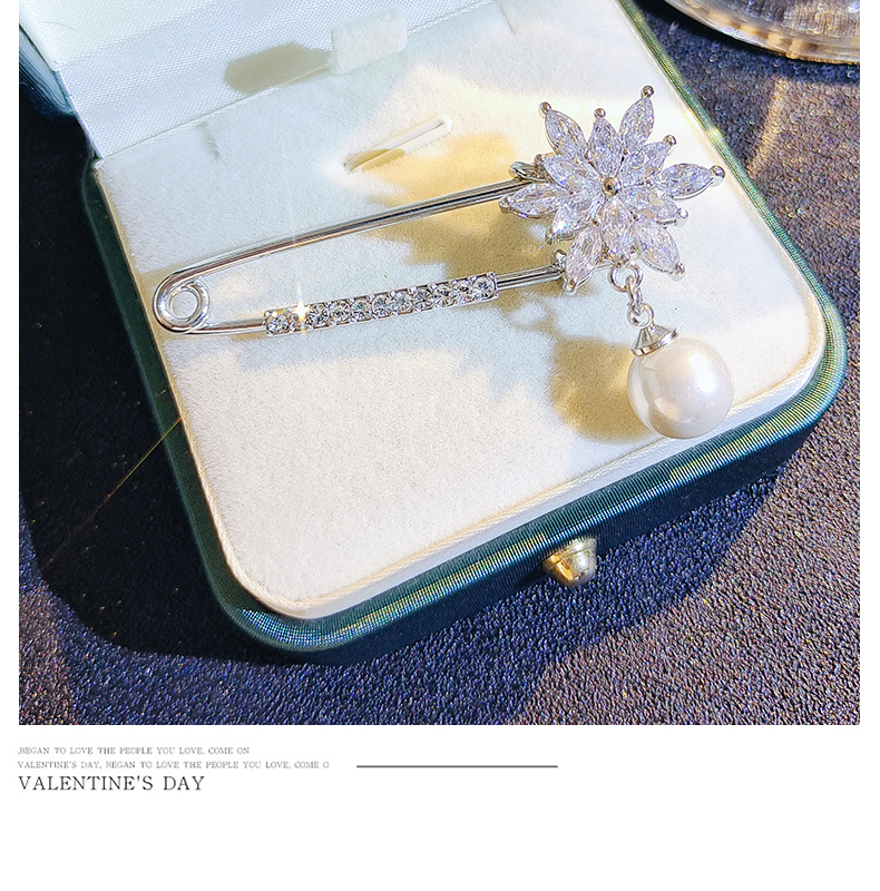 高檔仿鋯石花朵胸針女韓國東大門珍珠別針配飾固定衣服防走光胸花