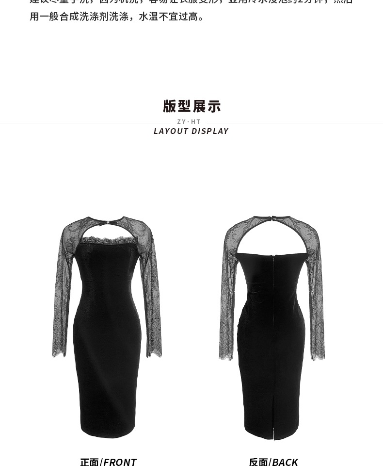 晚禮服設計感小眾連衣裙2023秋冬爆款絲絨蕾絲性感名媛生日小禮裙
