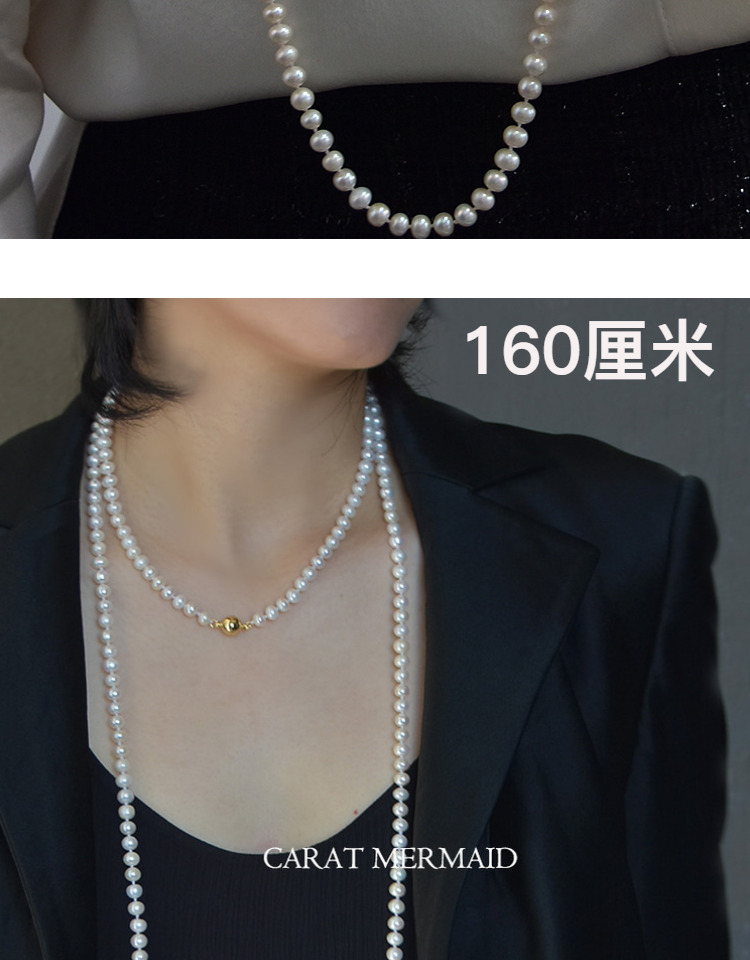 克拉人魚長款天然淡水珍珠項鏈女小香風毛衣鏈配飾輕奢小眾高級感