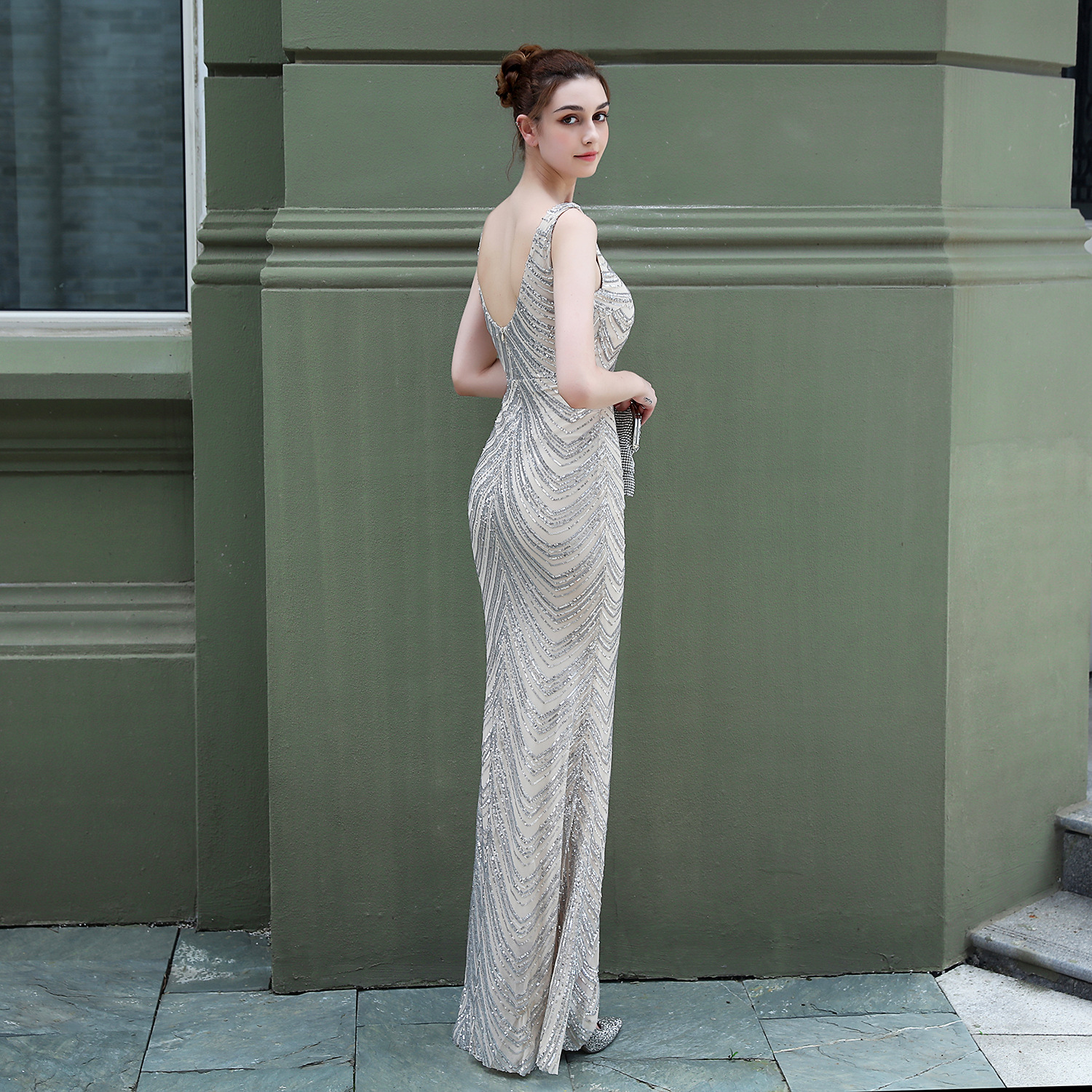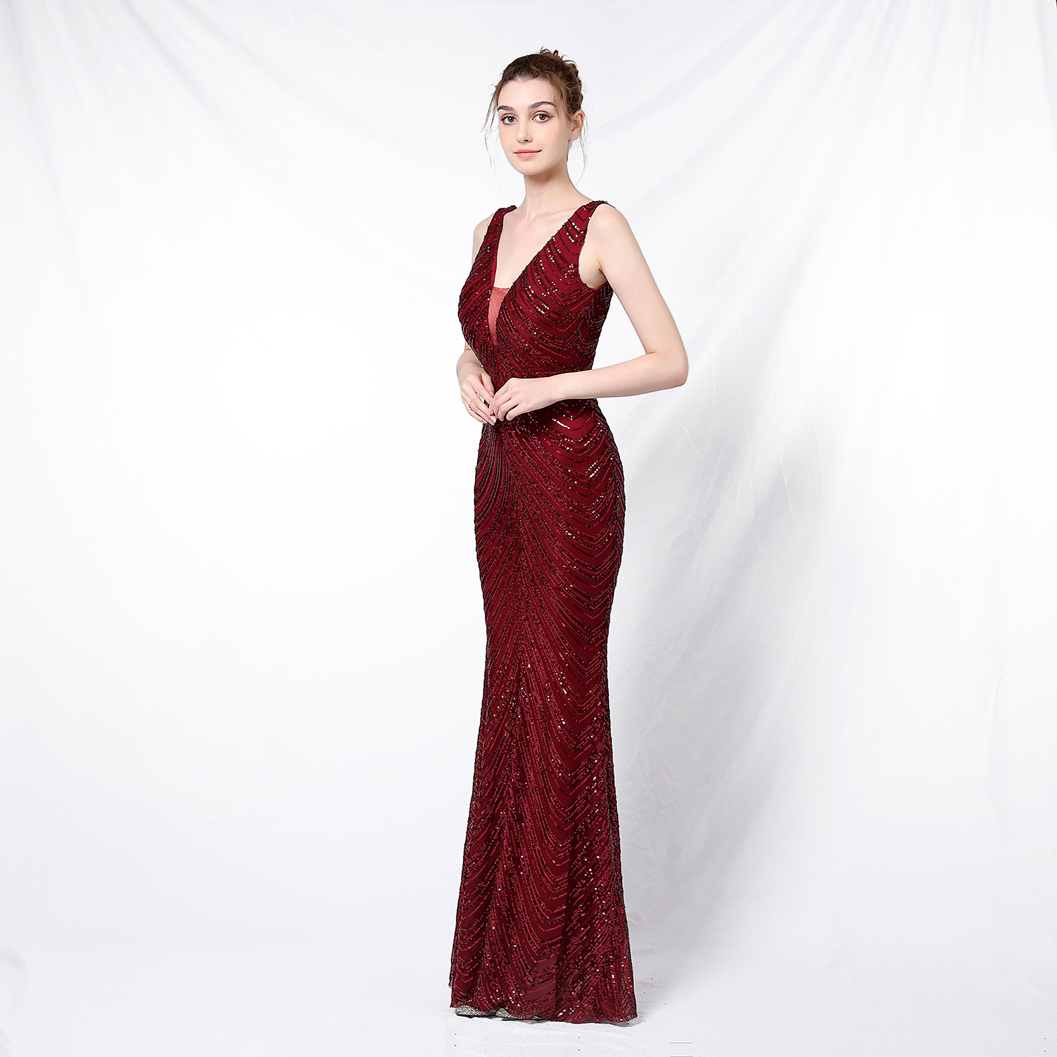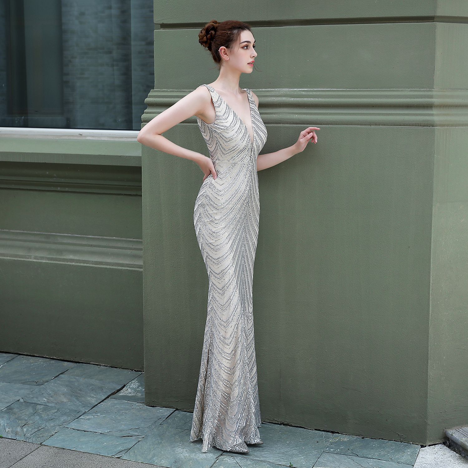 亮片晚會婚禮長款宴會修身晚禮服