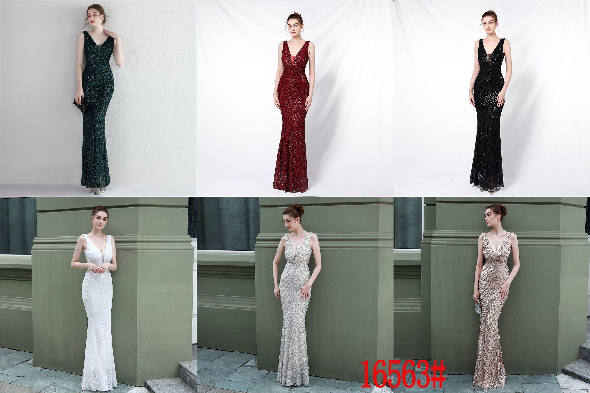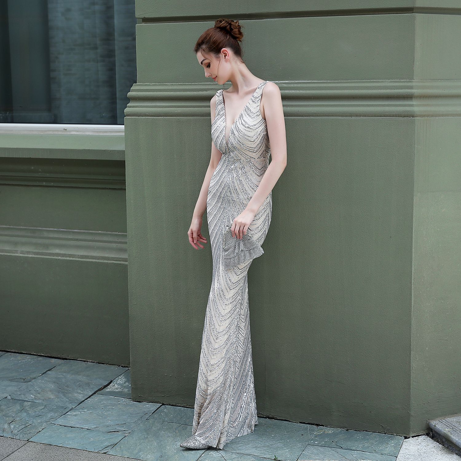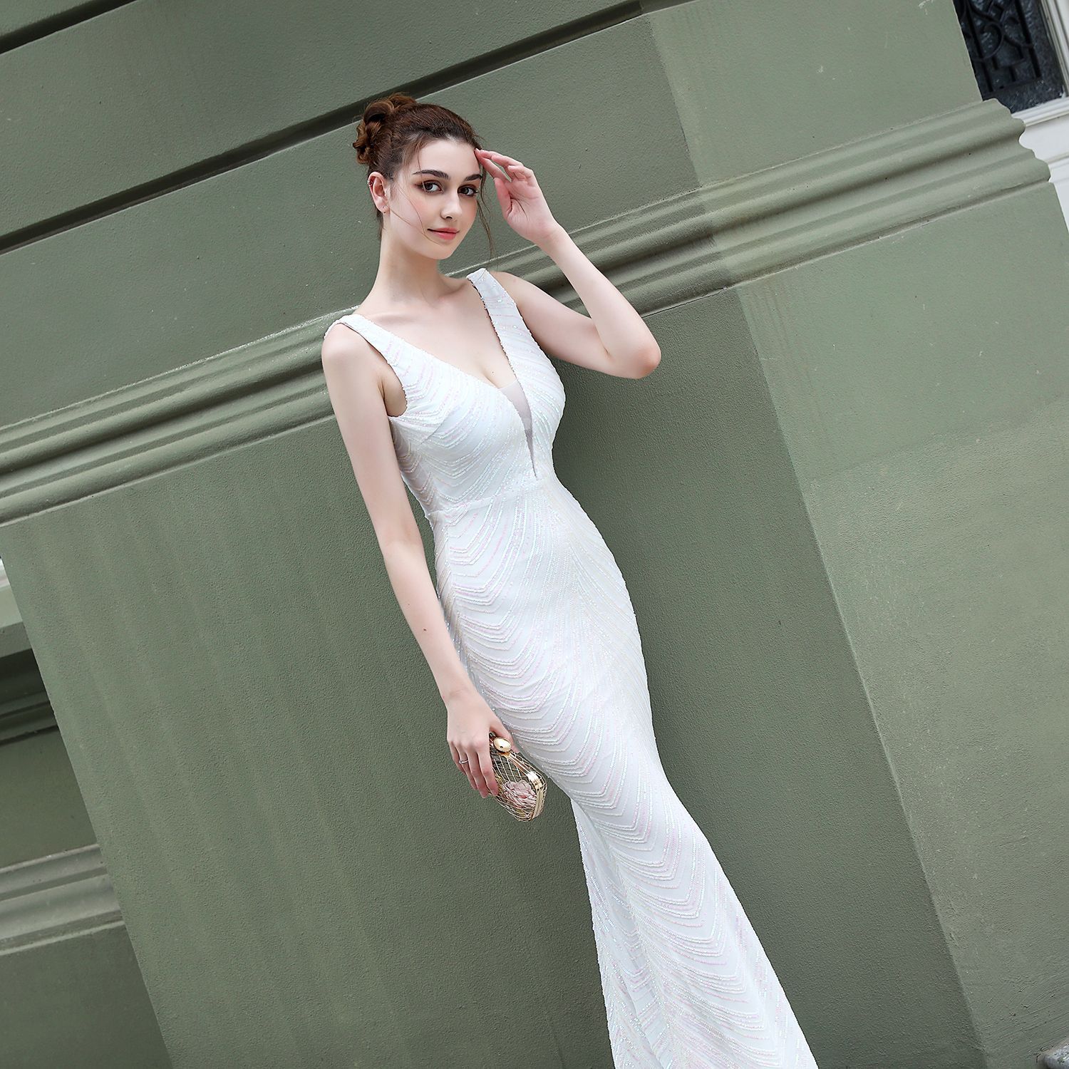 婚禮約會聚會時尚v領魚尾晚禮服