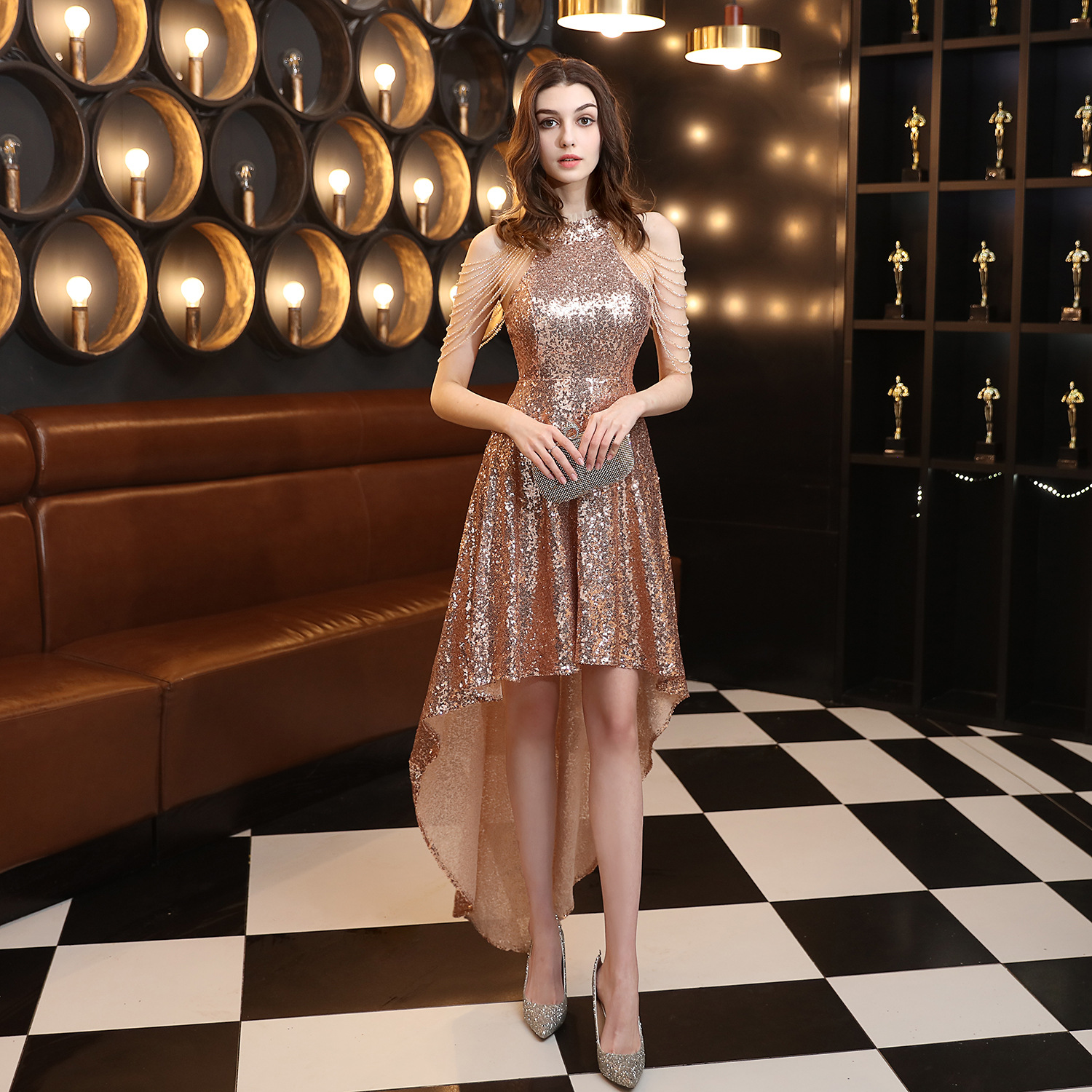 宴會女新款幻彩珠片短款洋裝晚禮服
