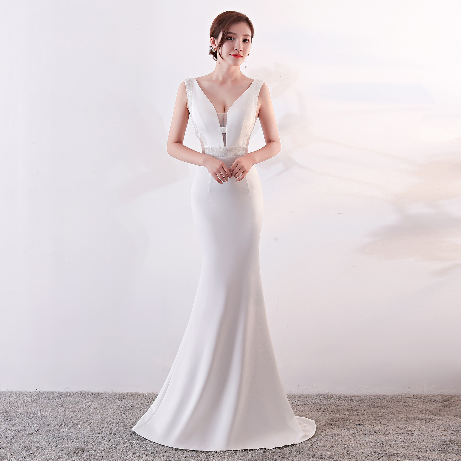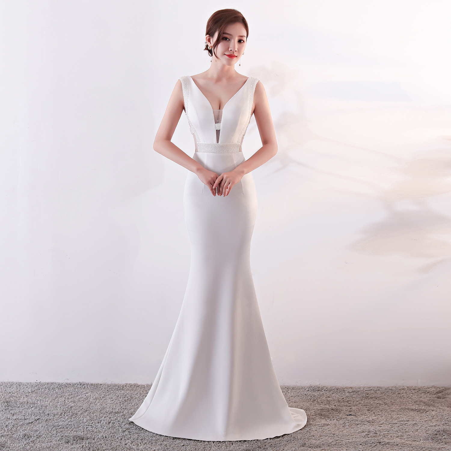 新娘敬酒服婚禮婚宴晚禮服女氣質女神范名媛魚尾長款主持人連衣裙