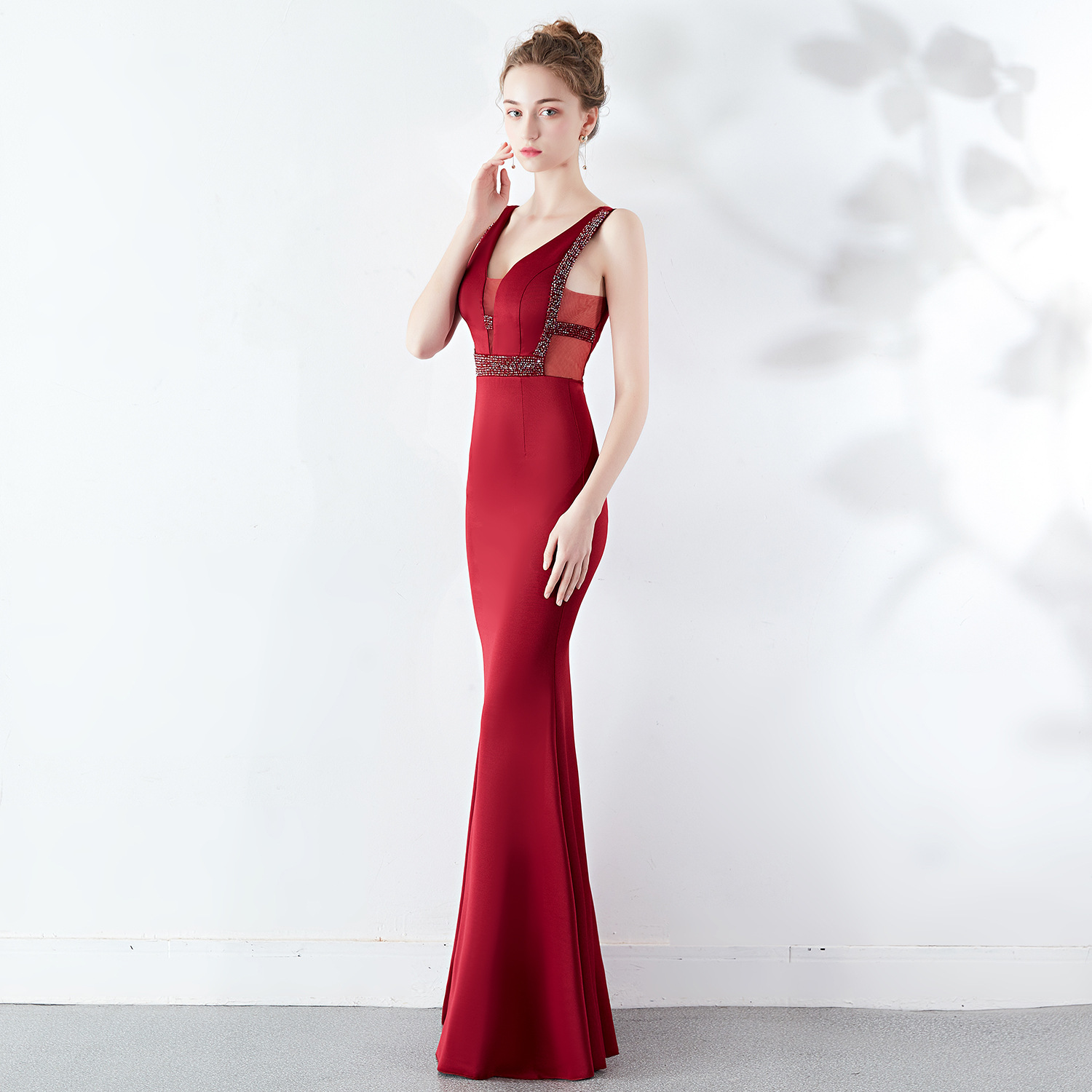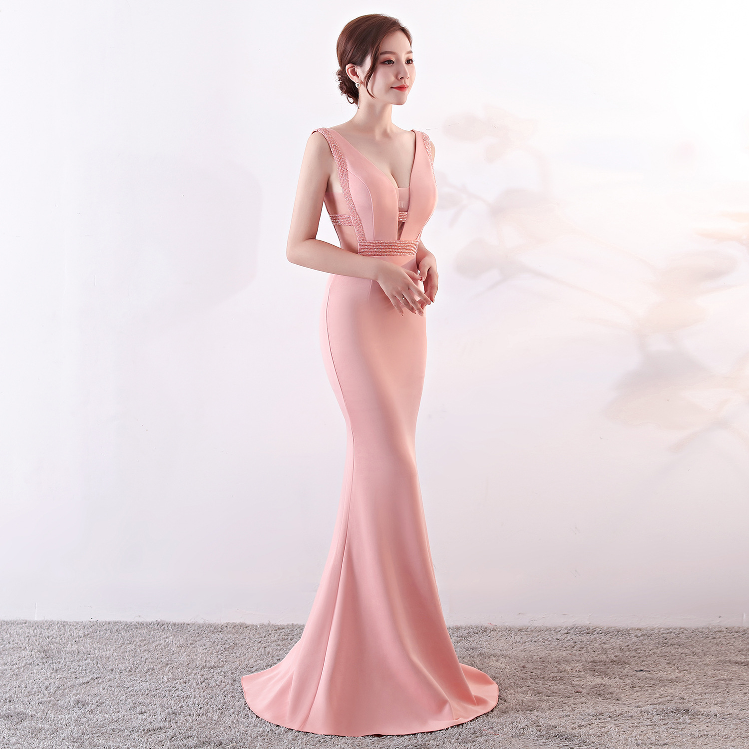 高貴優雅氣質女神范長款答謝宴晚禮服女主持人車模宴會魚尾連衣裙