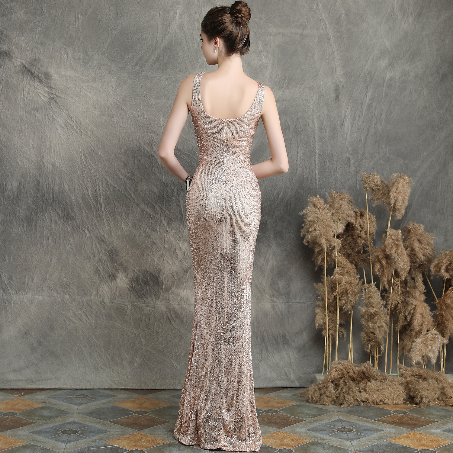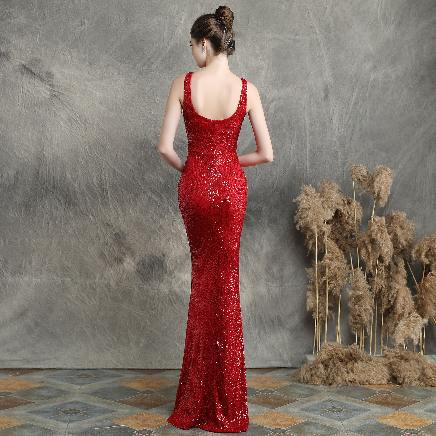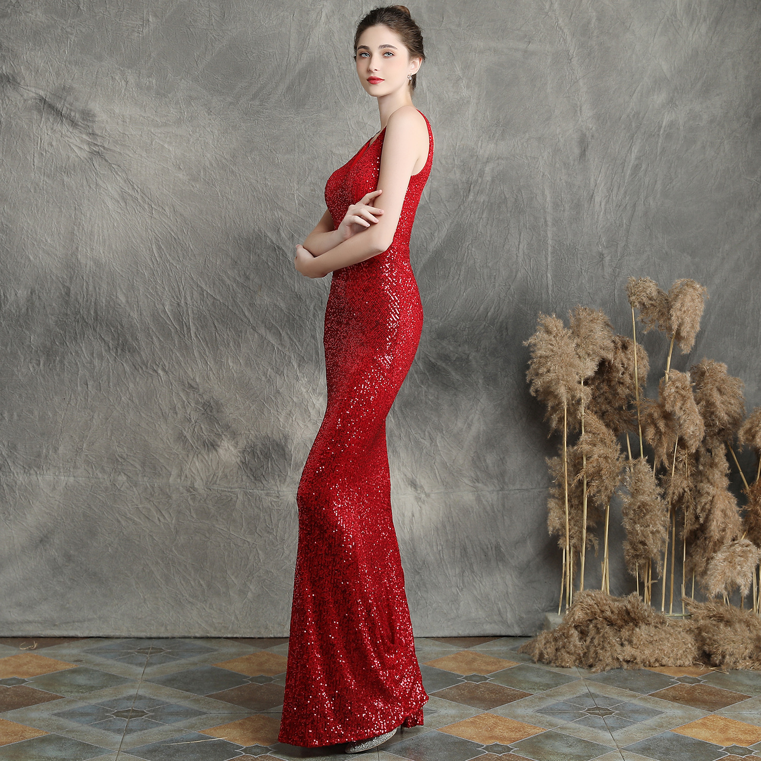 女新款宴會氣質優雅魚尾亮片晚禮服