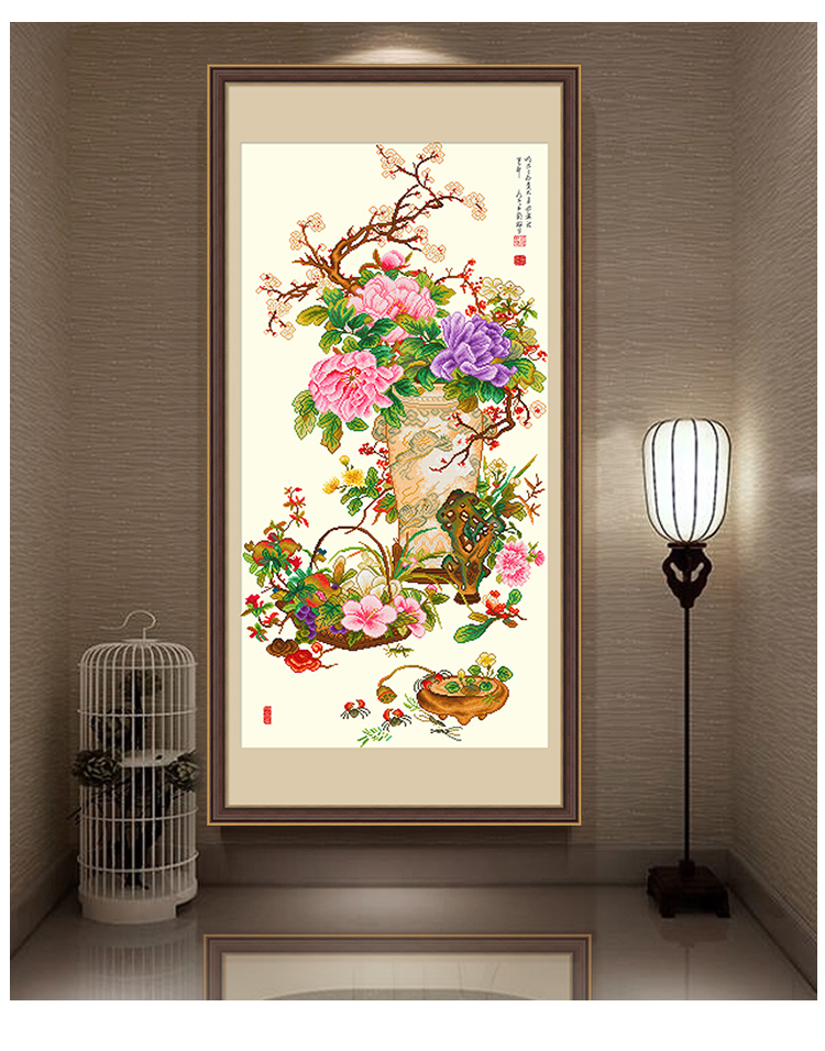 春天十字繡2023新款線繡豎版牡丹花開富貴客廳書房玄關手工自己繡