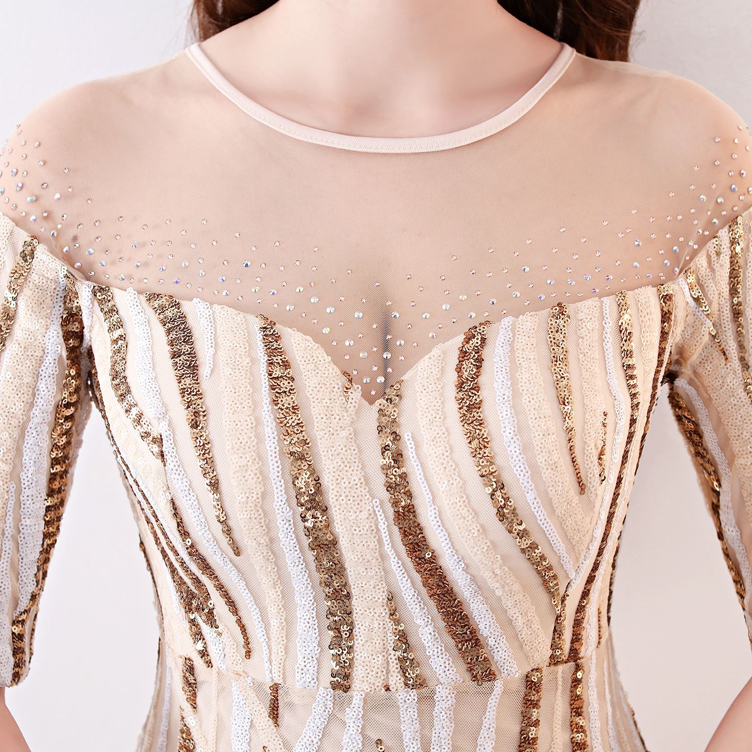 婚禮聚會約會宴會優雅香檳色晚禮服