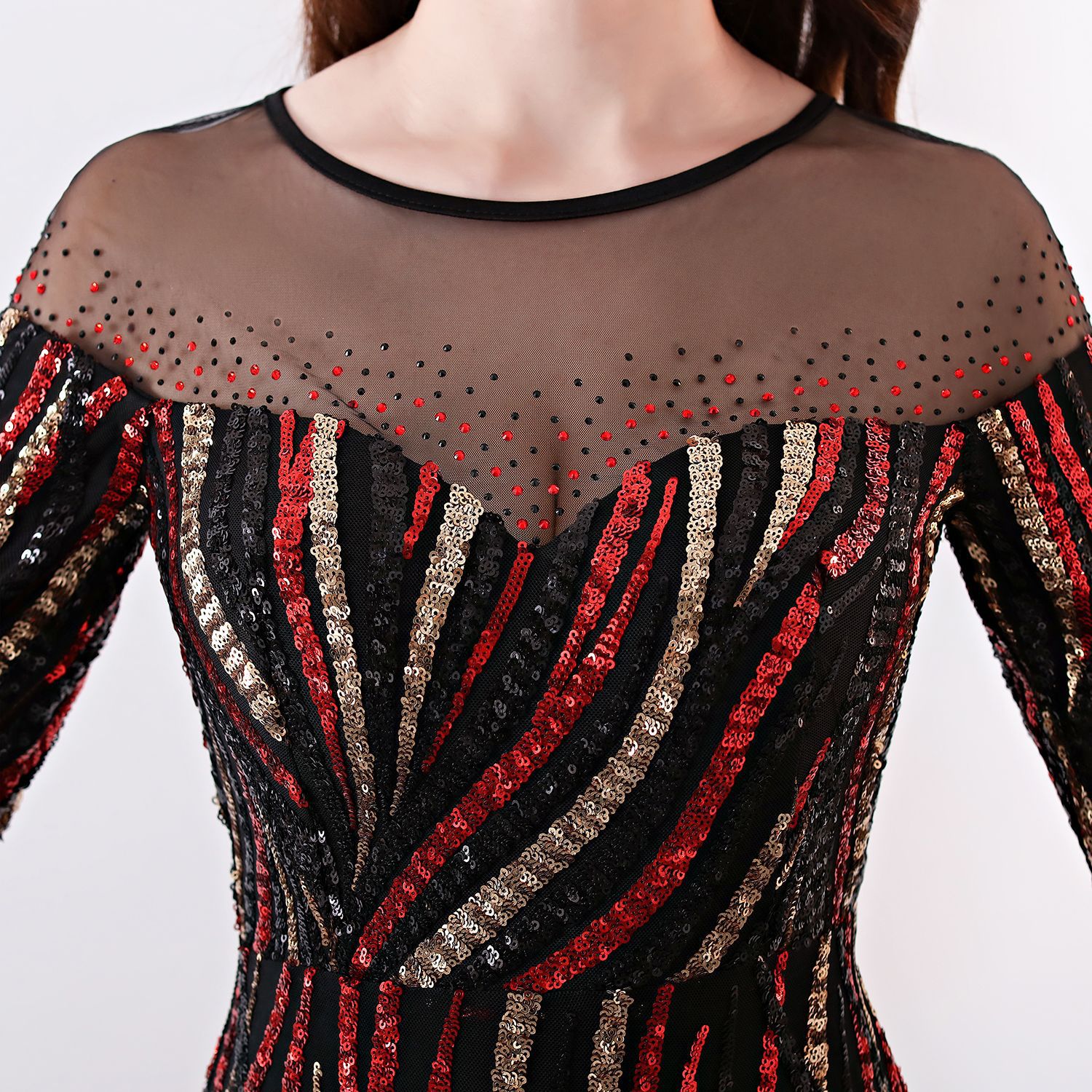 高端氣質亮片條紋拼色連衣裙女名媛奢華大氣晚宴主持人年會晚禮服
