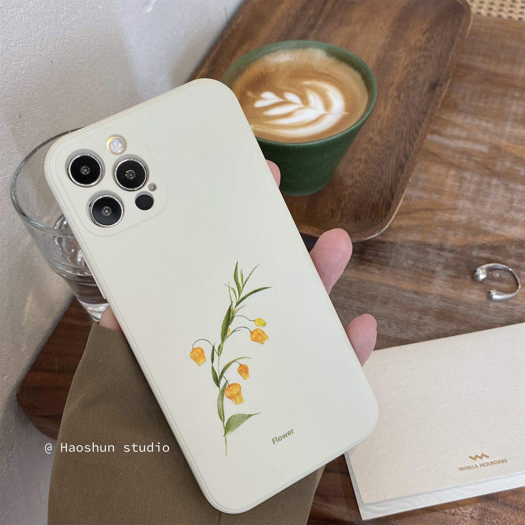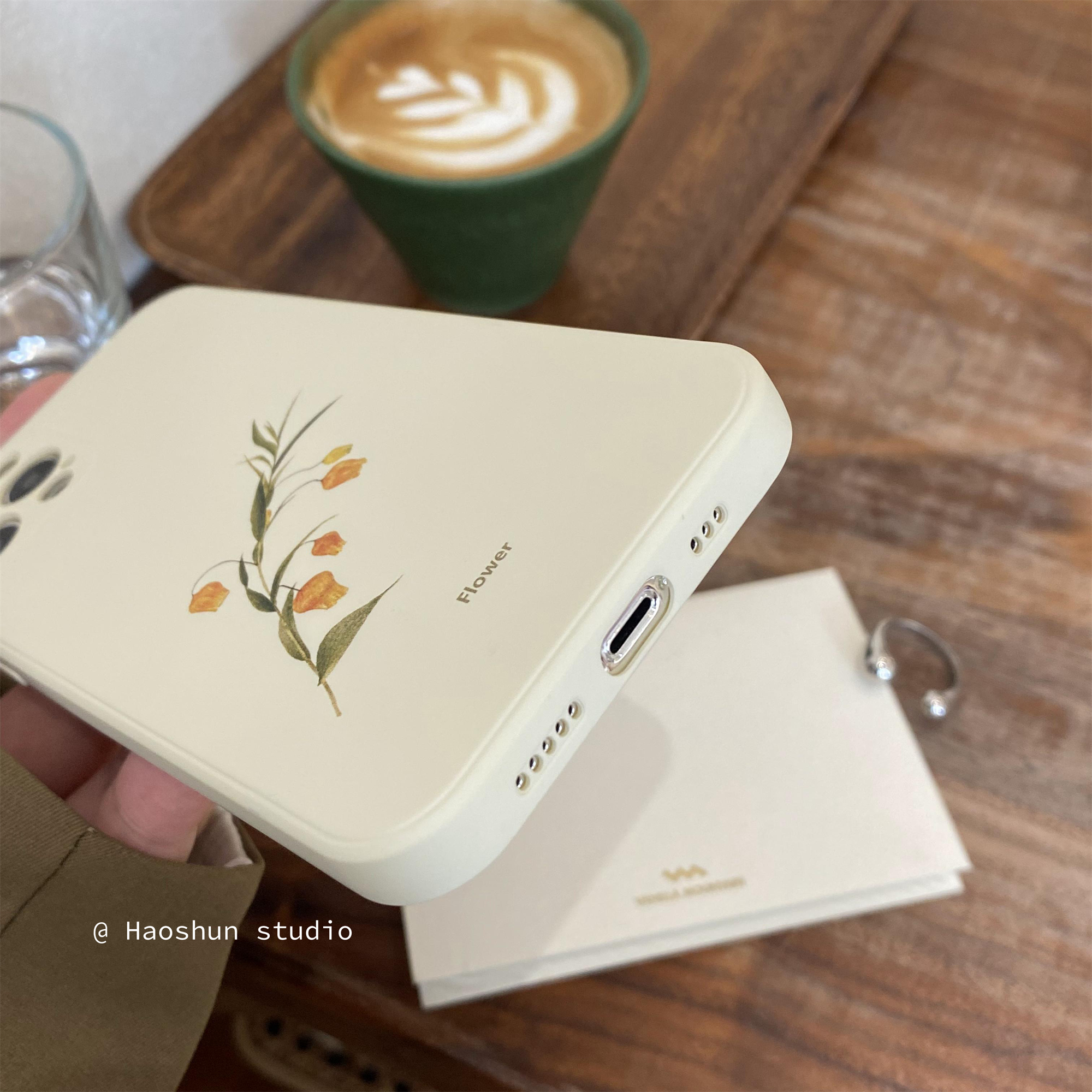 巷午奶白花卉適用于蘋果14手機殼