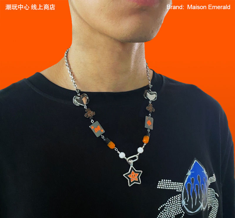 玩物制造 Maison Emerald(ME) 潮流橙色卡牌五角星笑臉幸運星項鏈