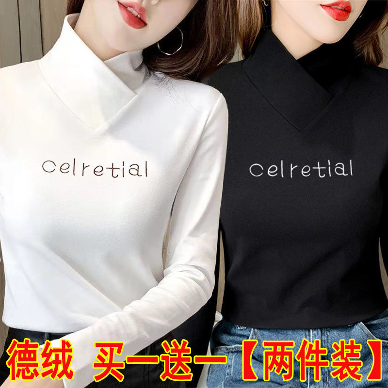 單/兩件裝 2023秋冬新款打底衫女德絨保暖內搭純色修身長袖上衣女