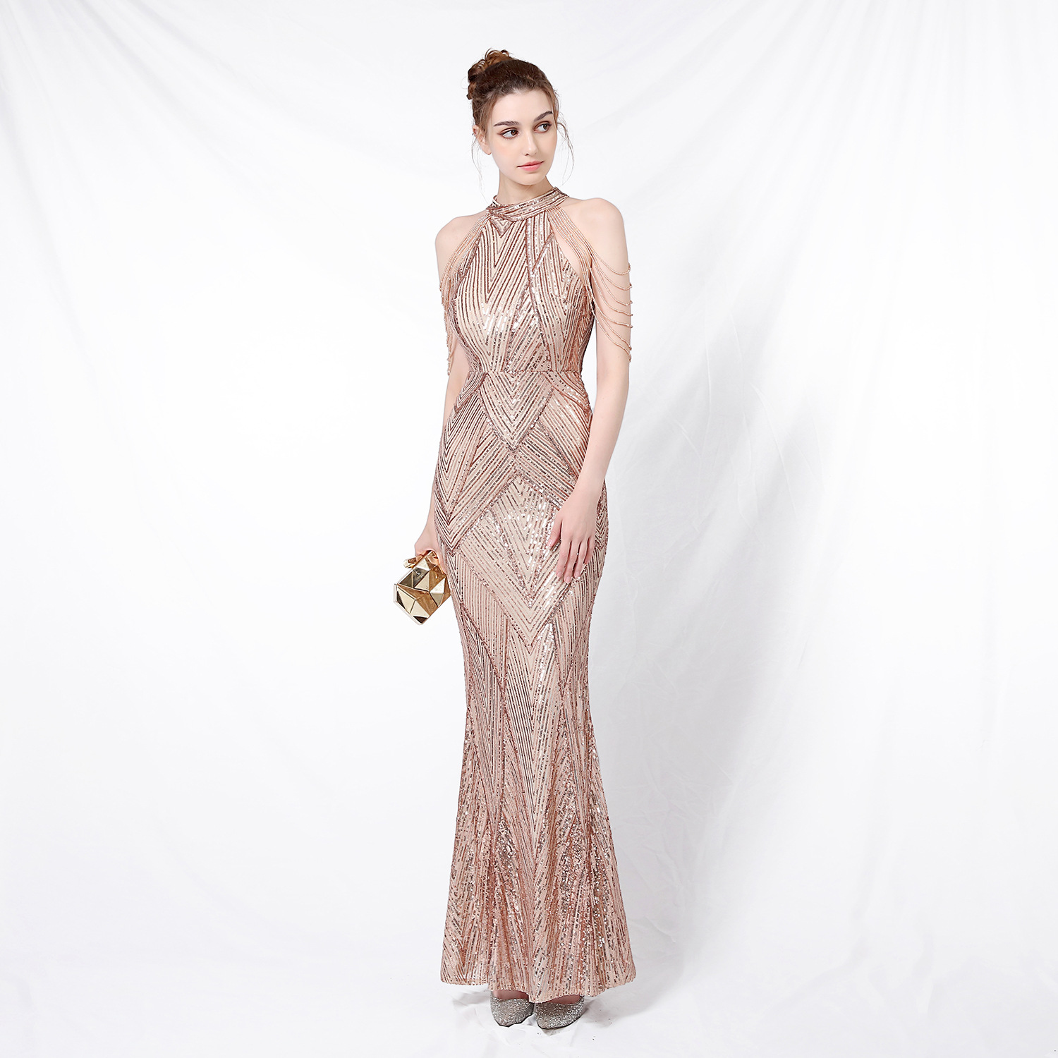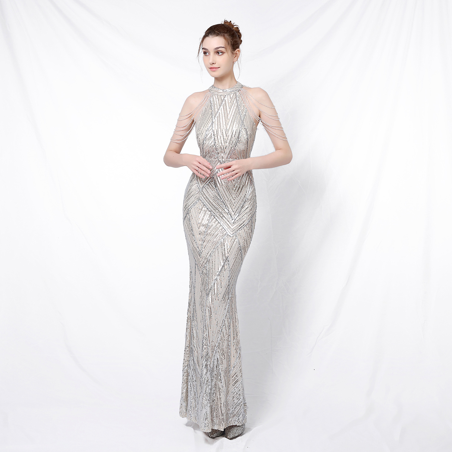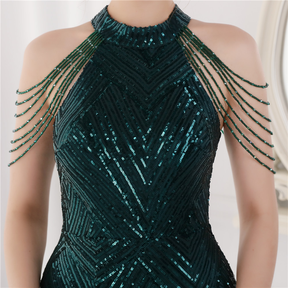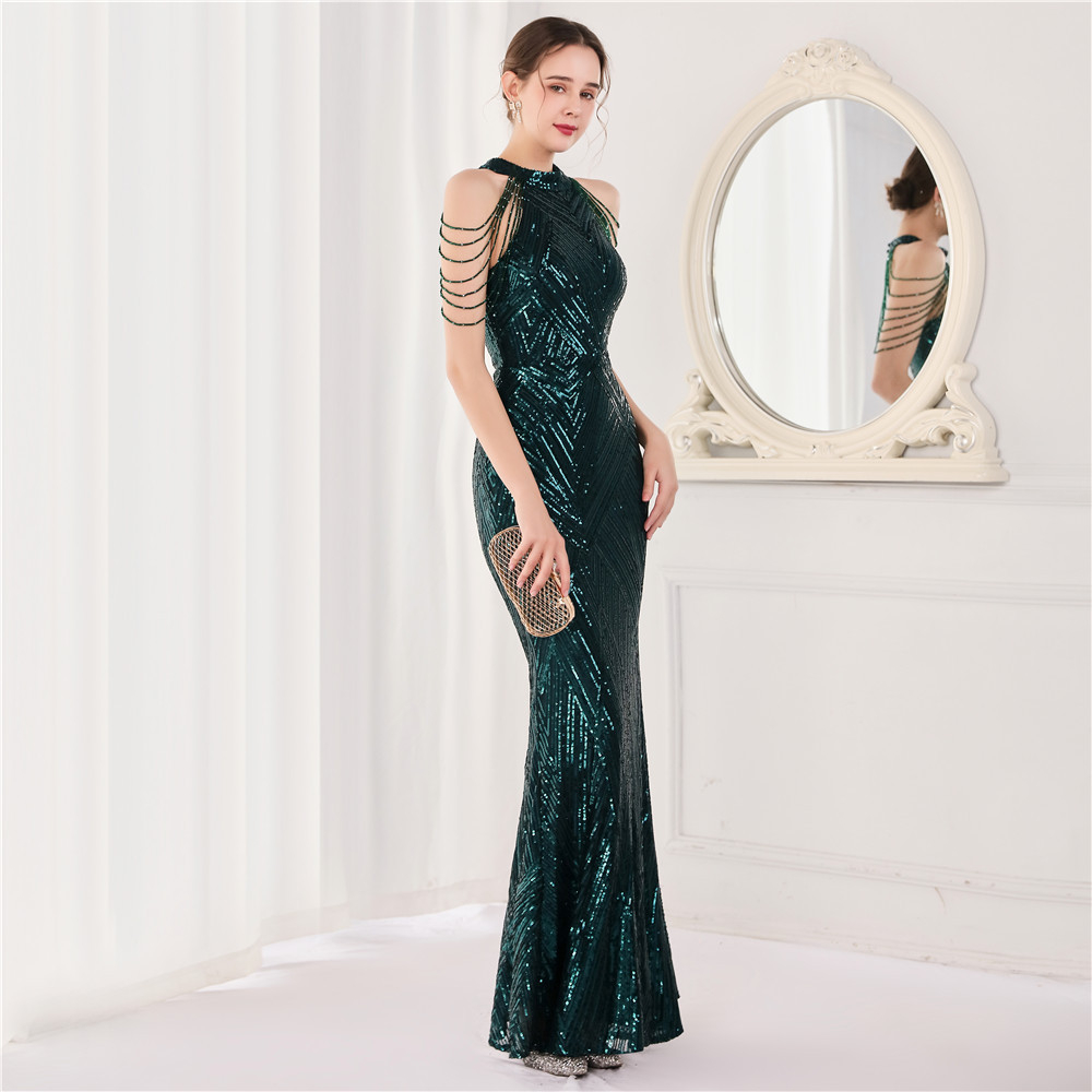 2023年新款高腰秋亮片魚尾長晚禮服