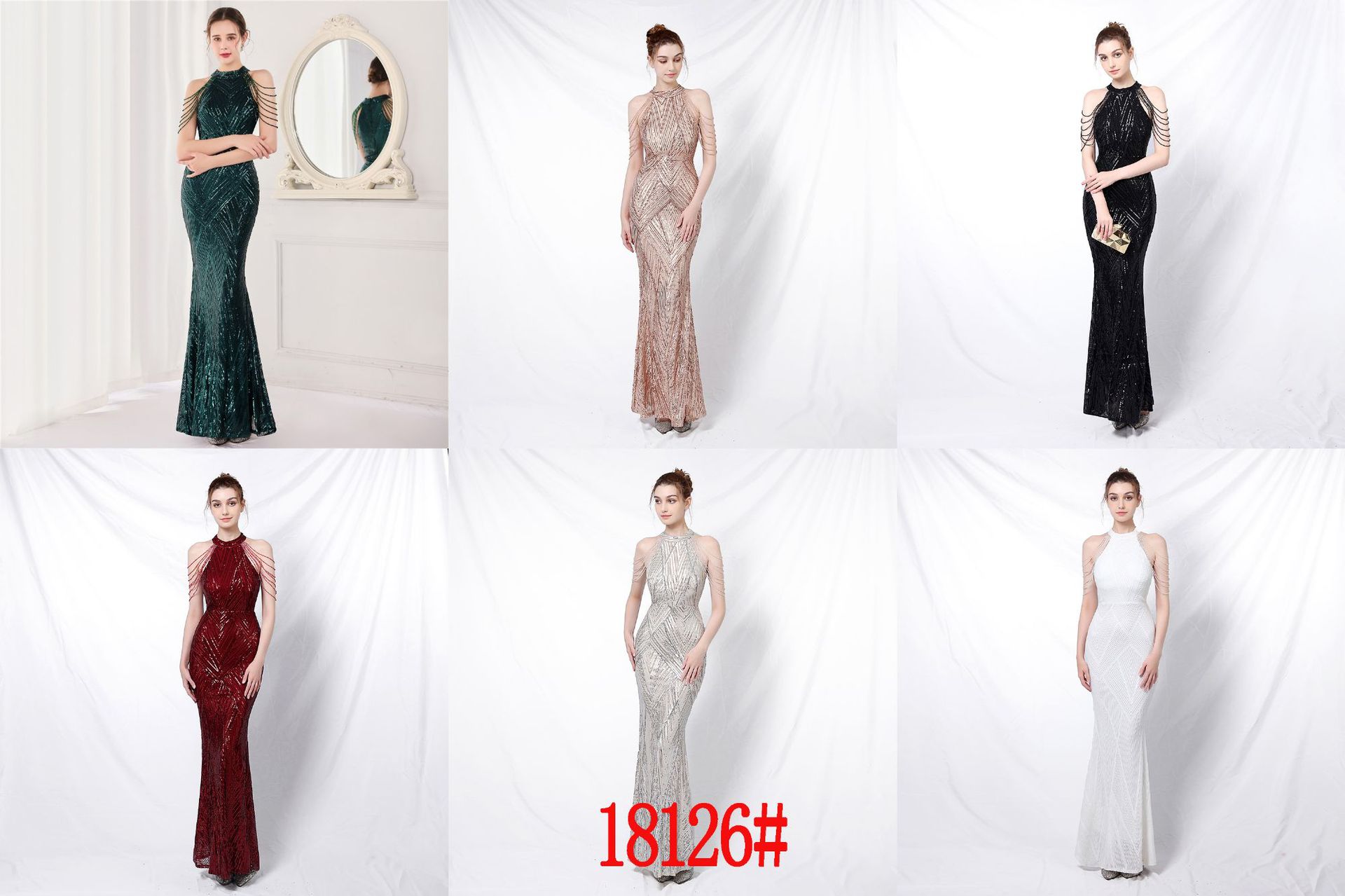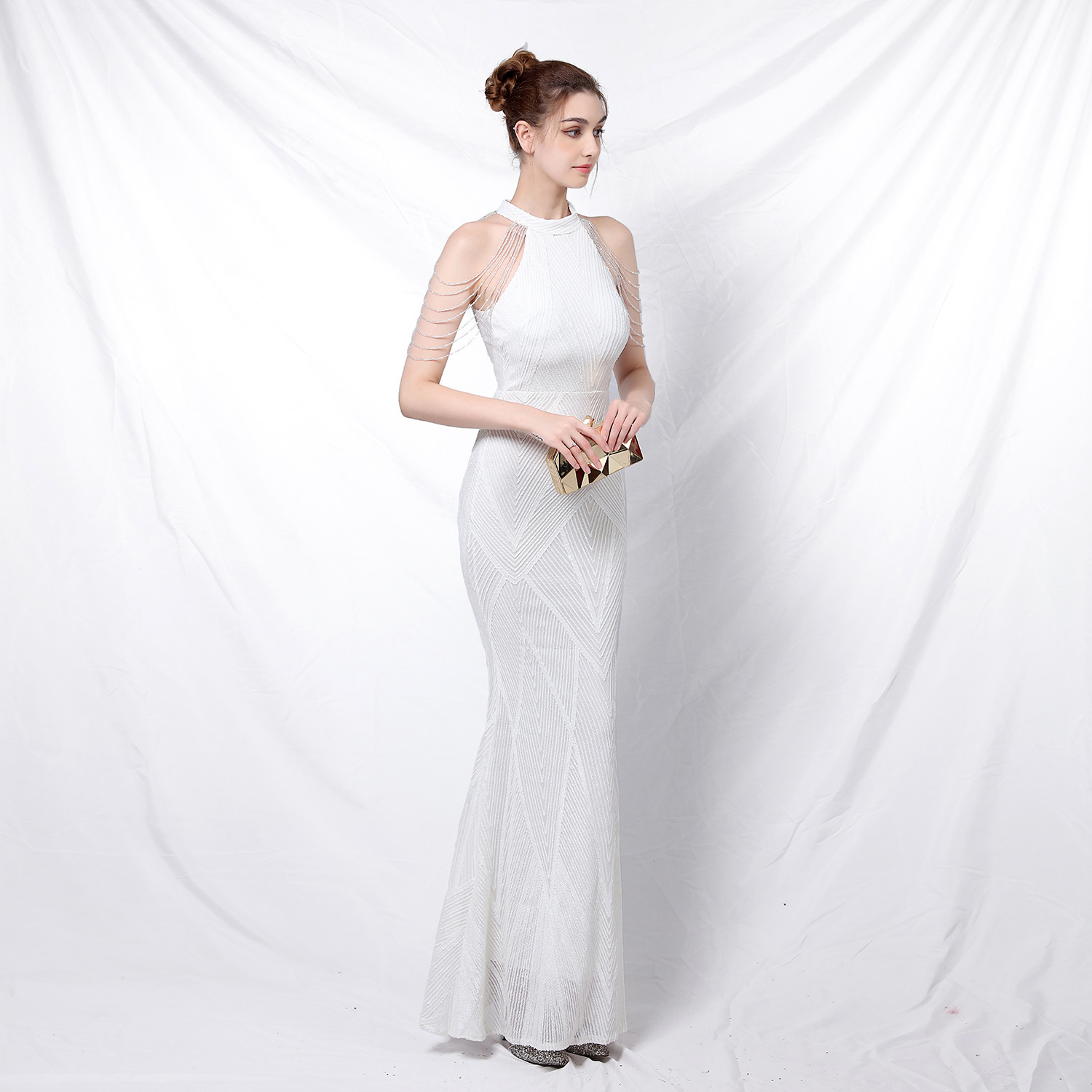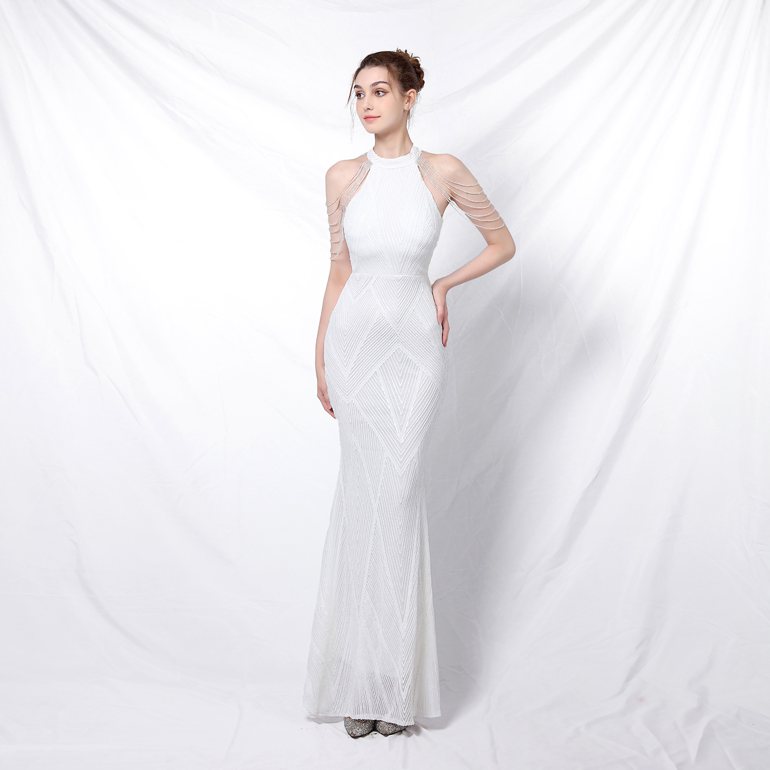 2023年新款高腰秋亮片魚尾長晚禮服