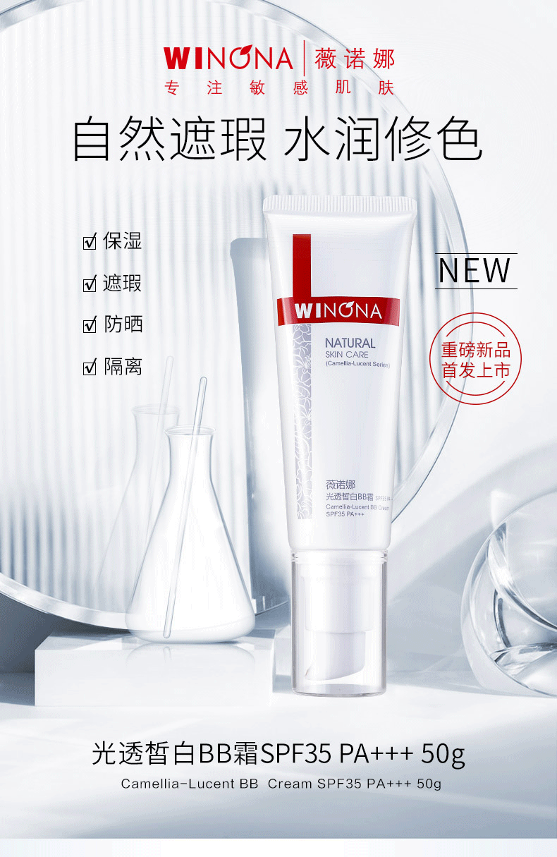 薇諾娜光透皙白BB霜敏感肌遮瑕隔離防曬補水保濕提亮養膚裸妝正品