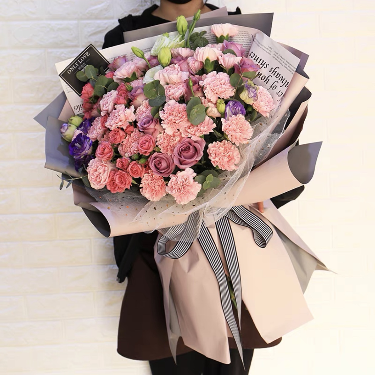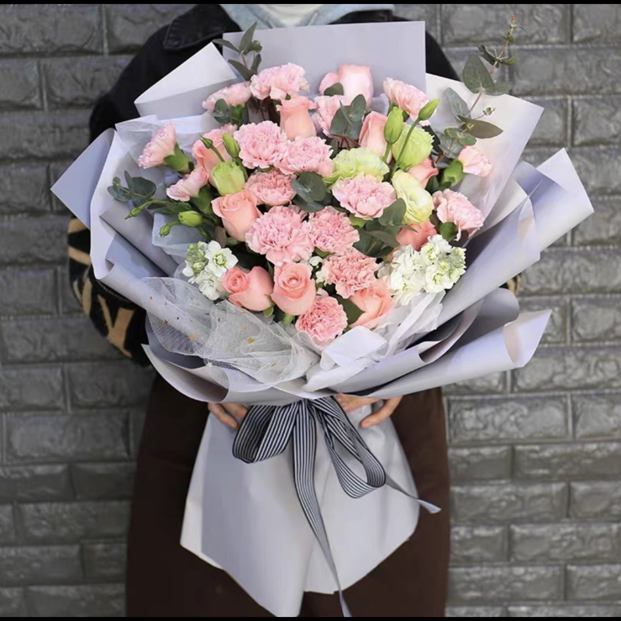 混搭粉玫瑰花束上海速遞同城鮮花