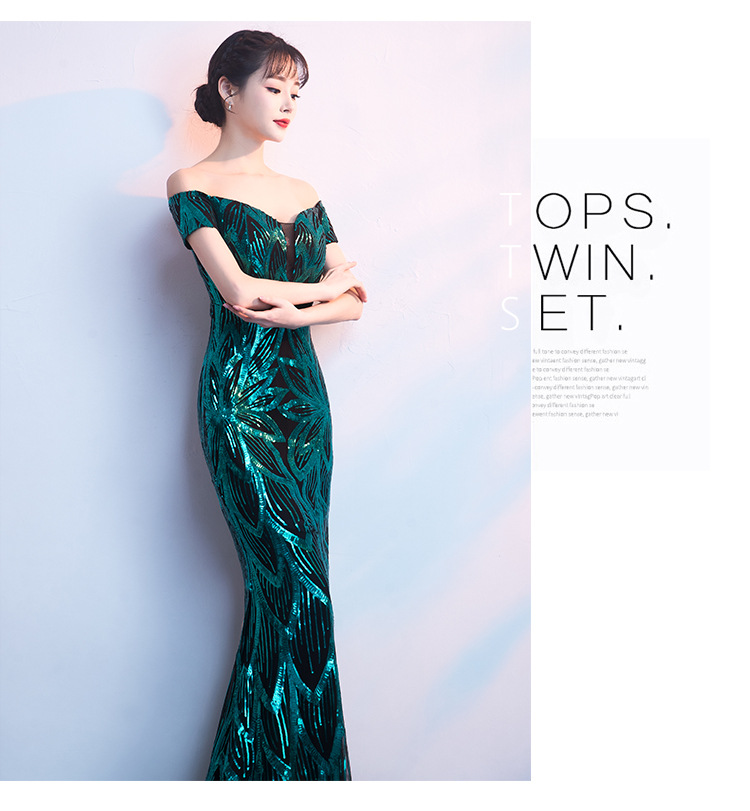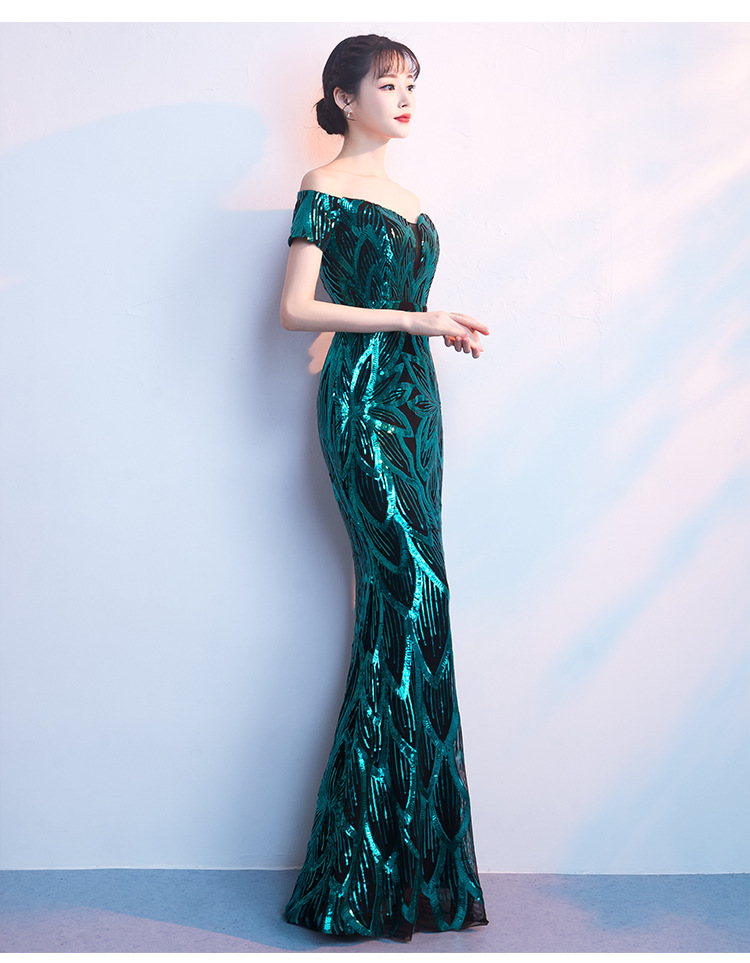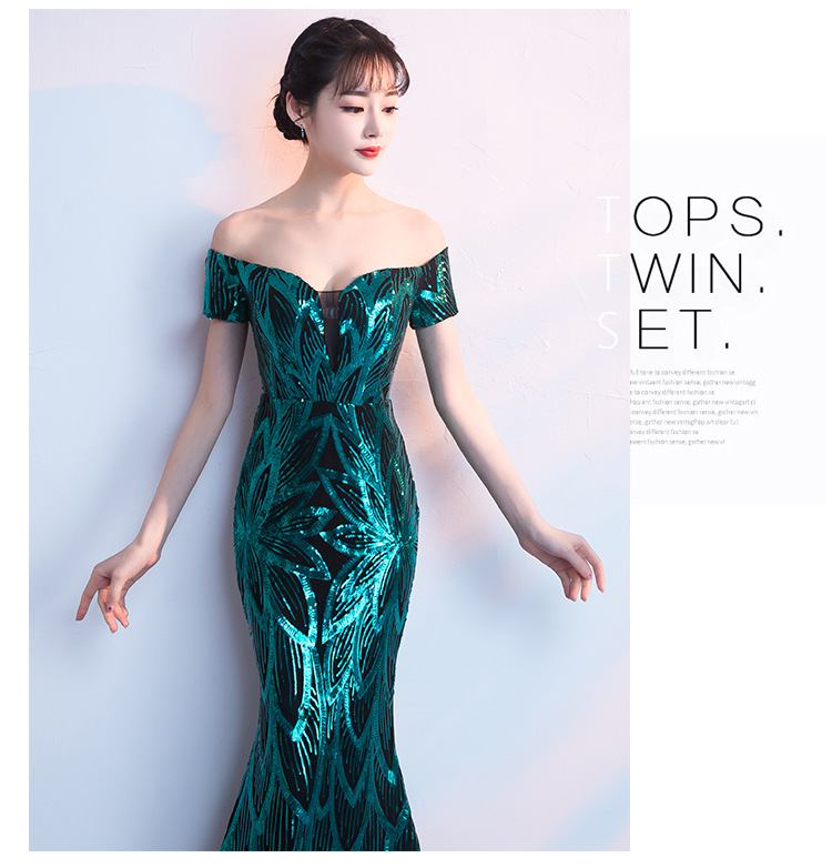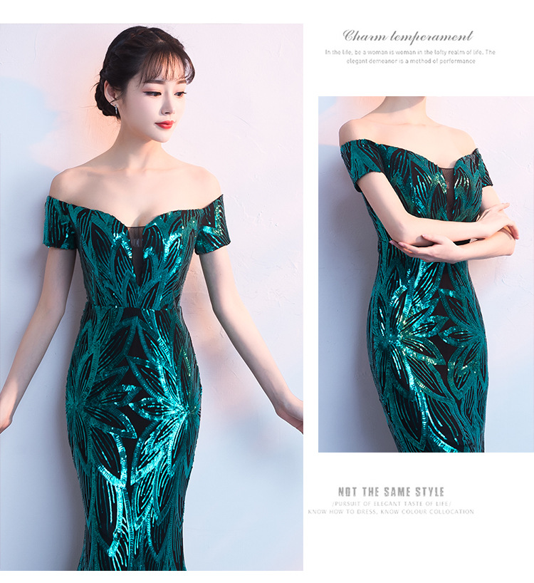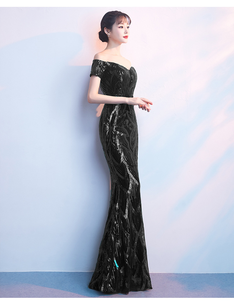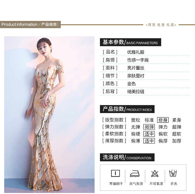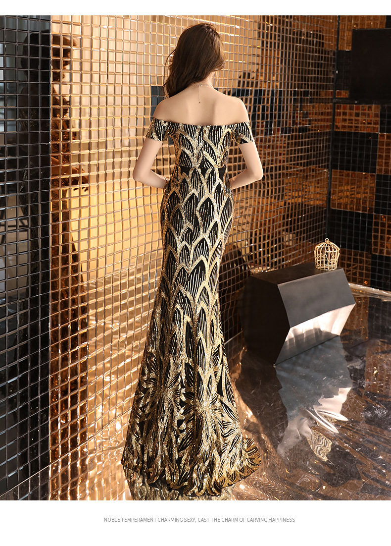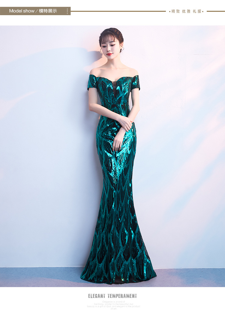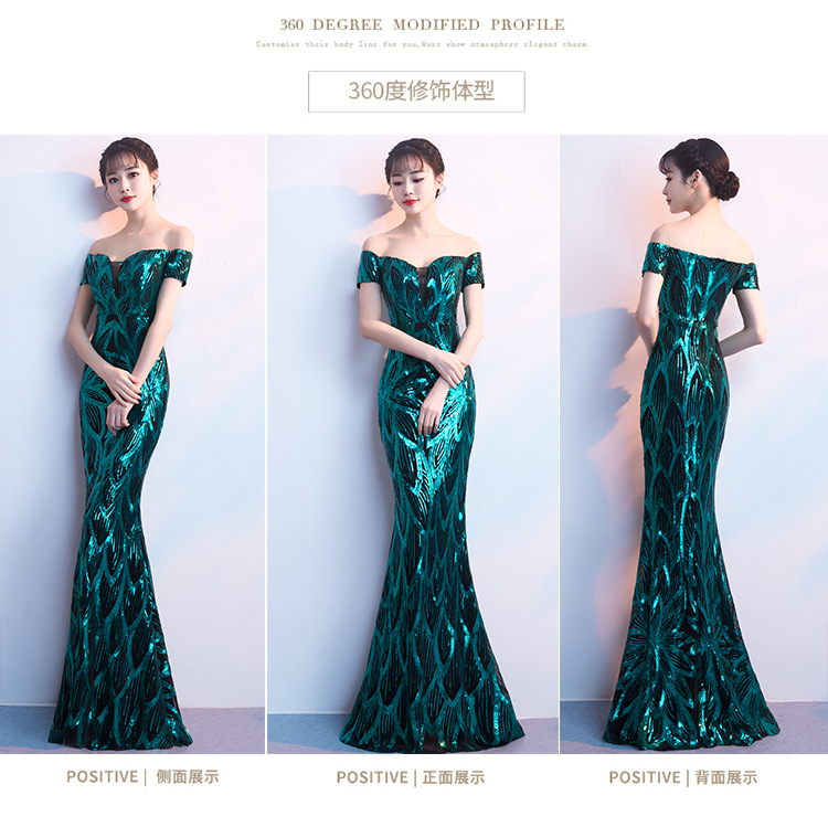 輕奢高級感宴會晚會晚禮服女高貴氣質優雅一字肩主持人魚尾連衣裙