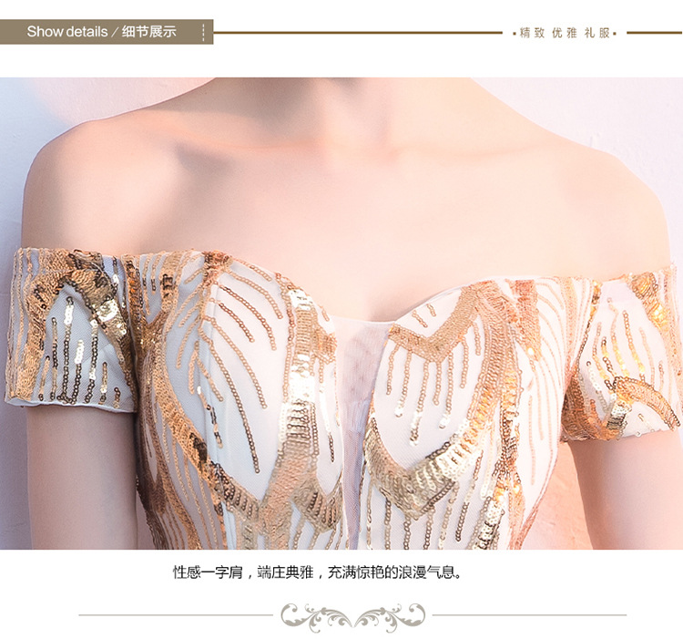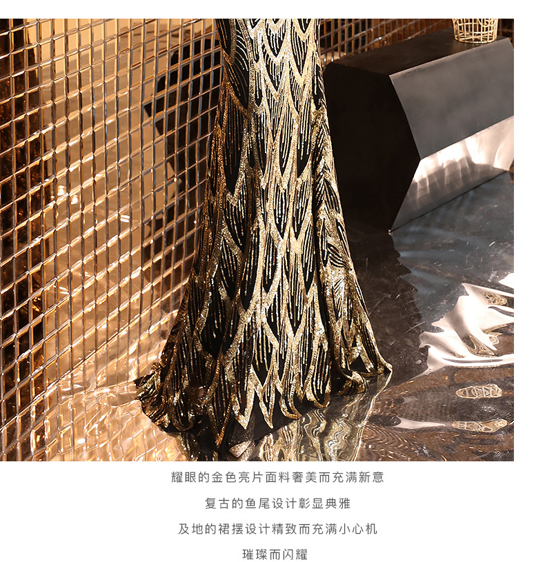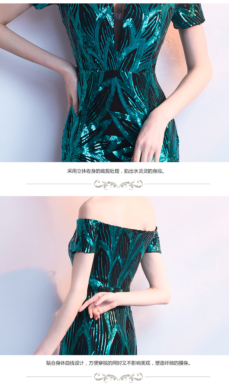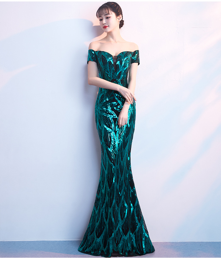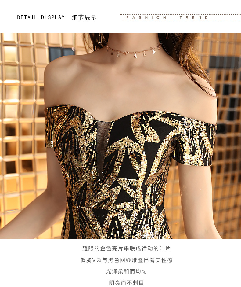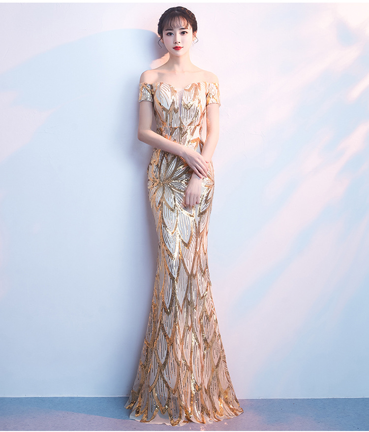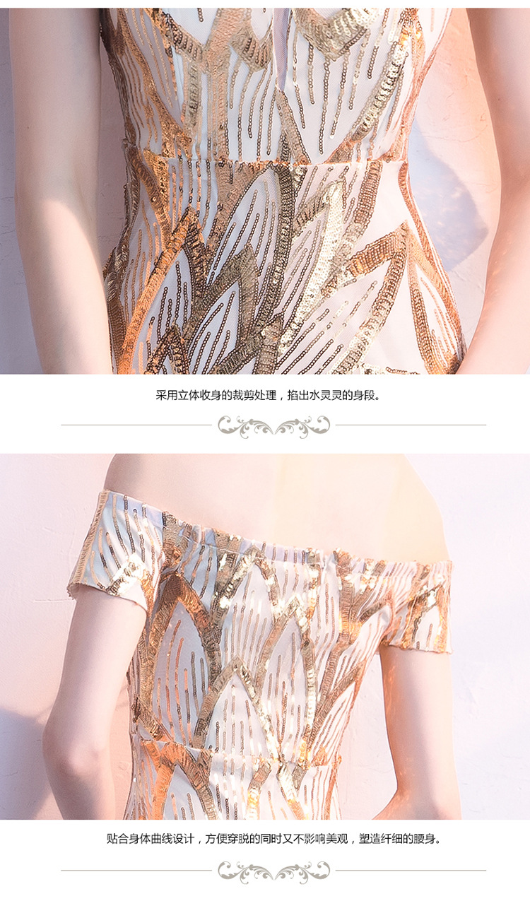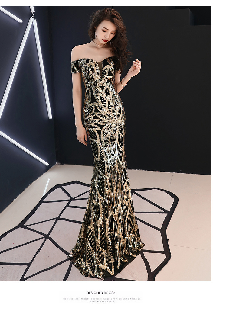 輕奢高級感宴會晚會晚禮服女高貴氣質優雅一字肩主持人魚尾連衣裙