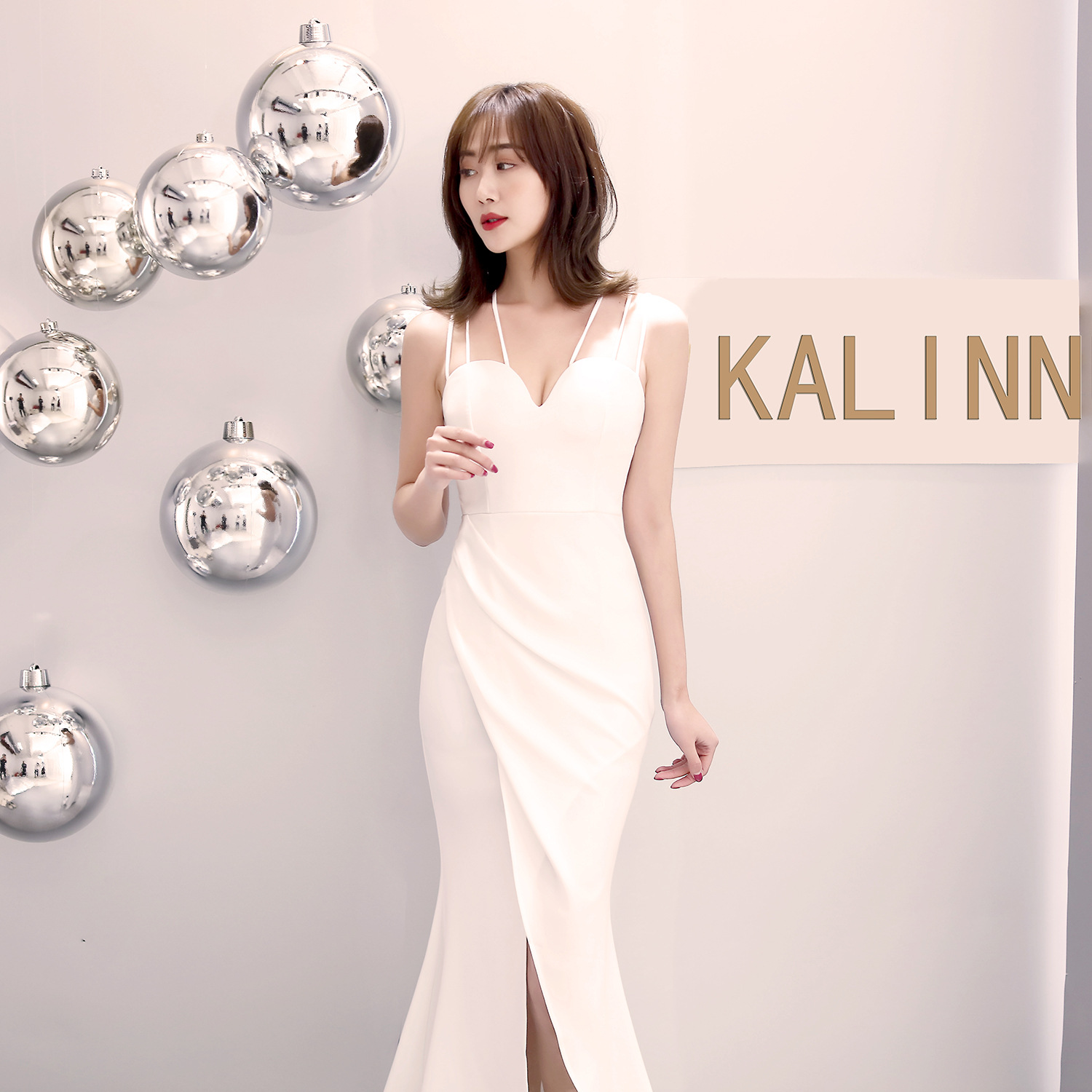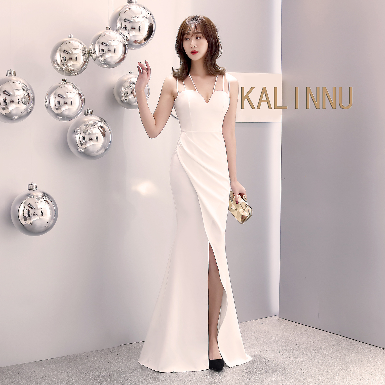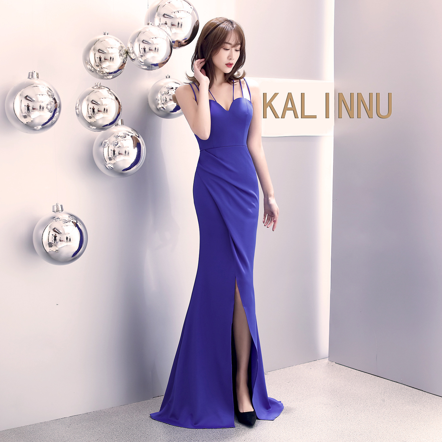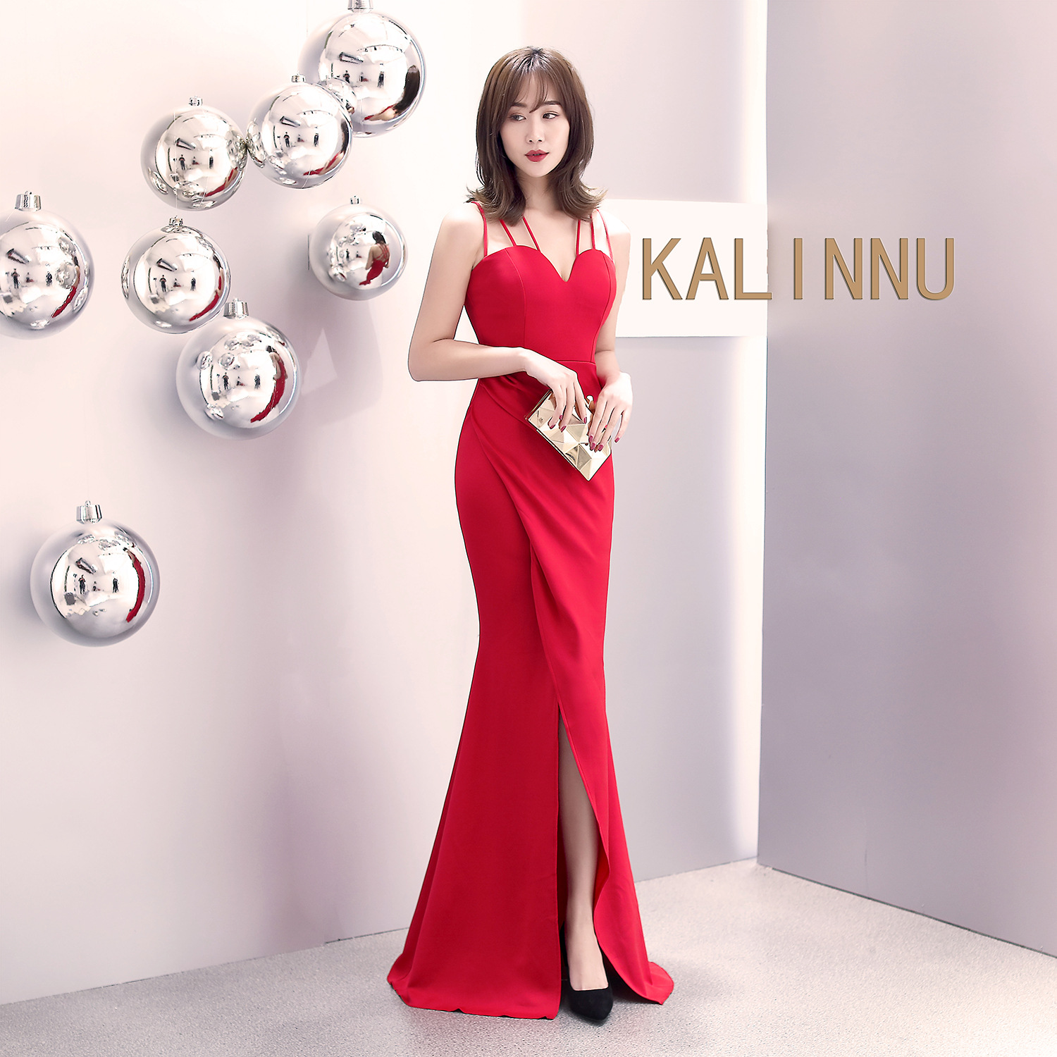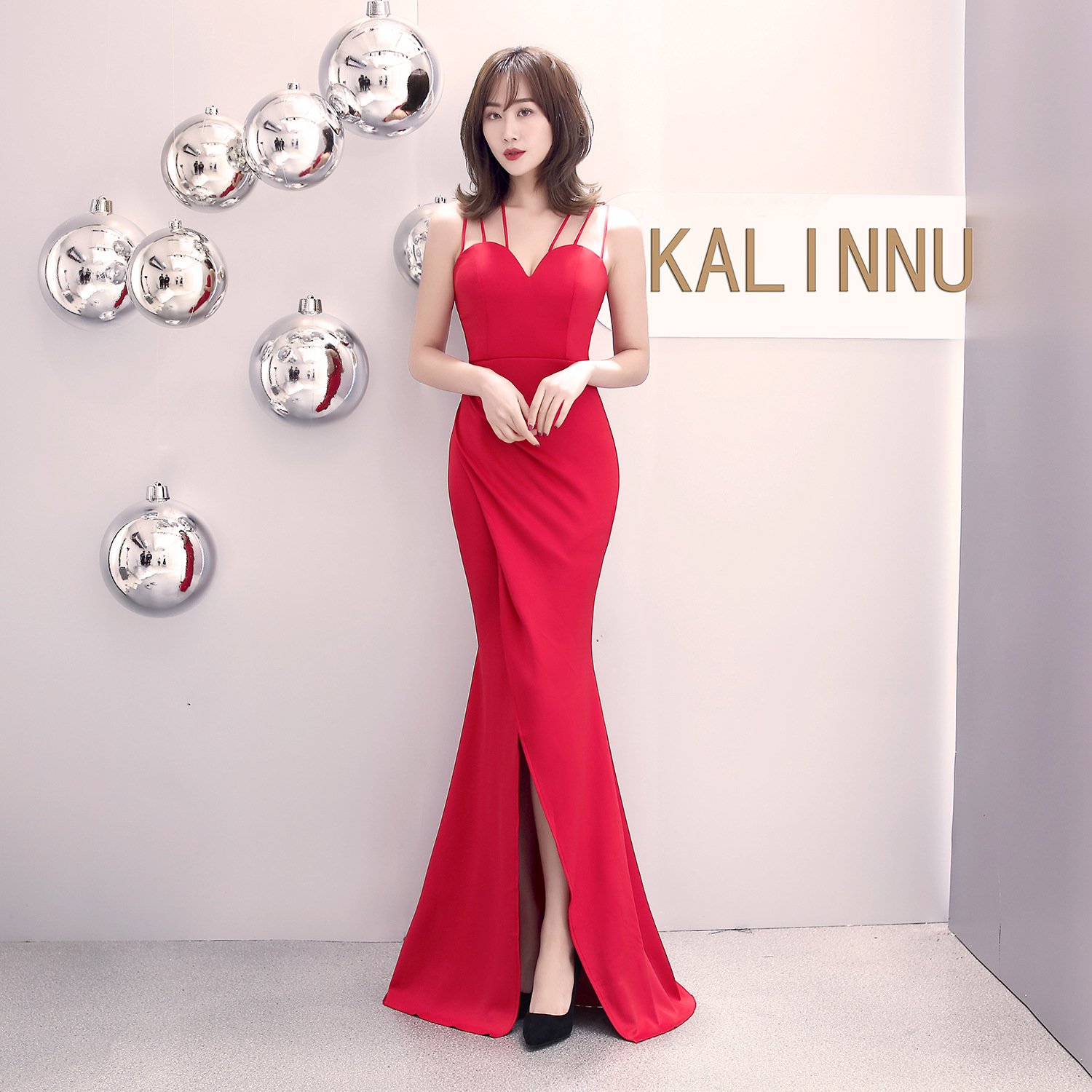 2023新款高級感宴會晚禮服女高貴氣質優雅長款性感吊帶魚尾連衣裙
