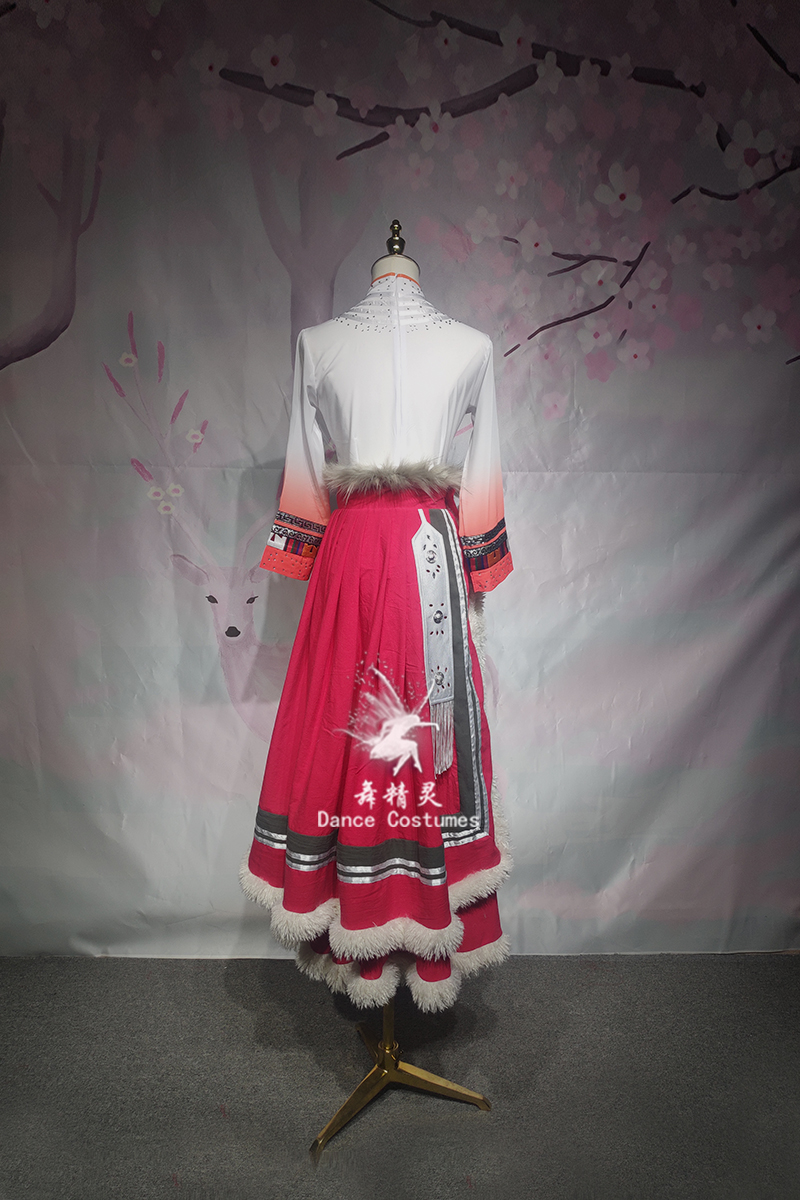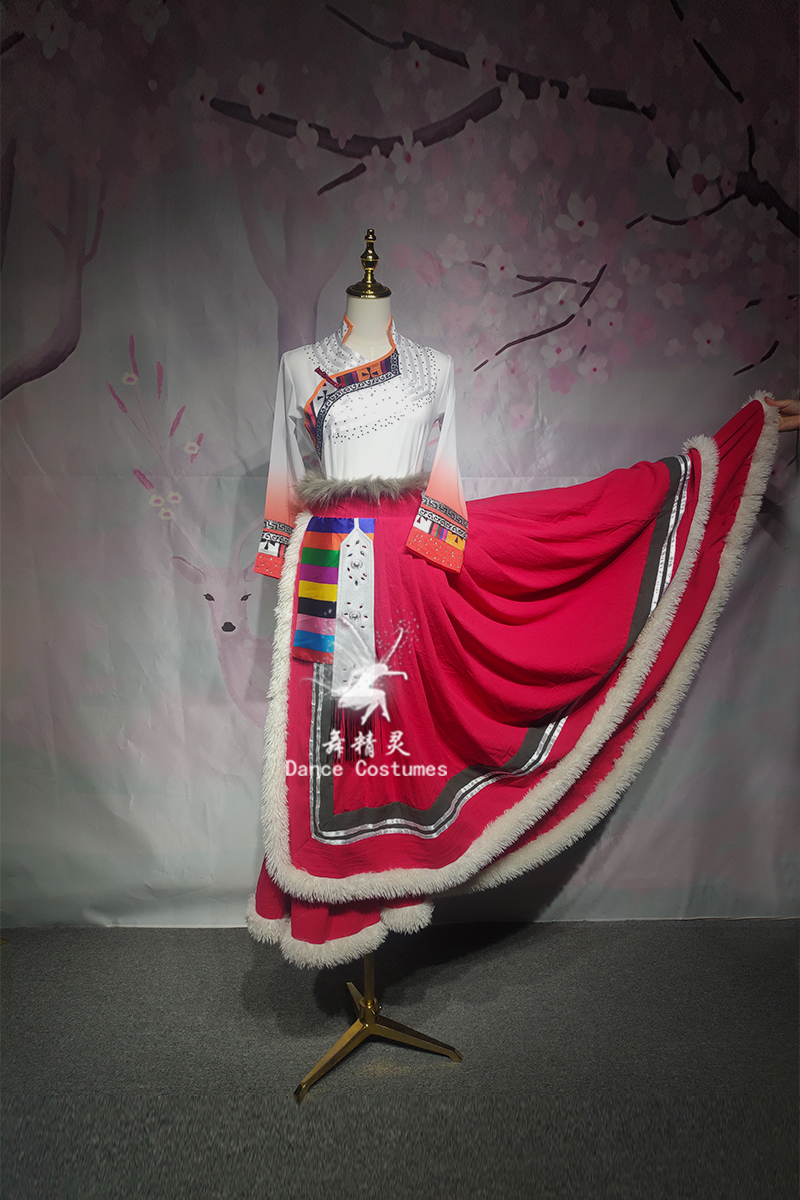 新款藏族舞蹈演出服少數民族長裙練功服表演服藝考服