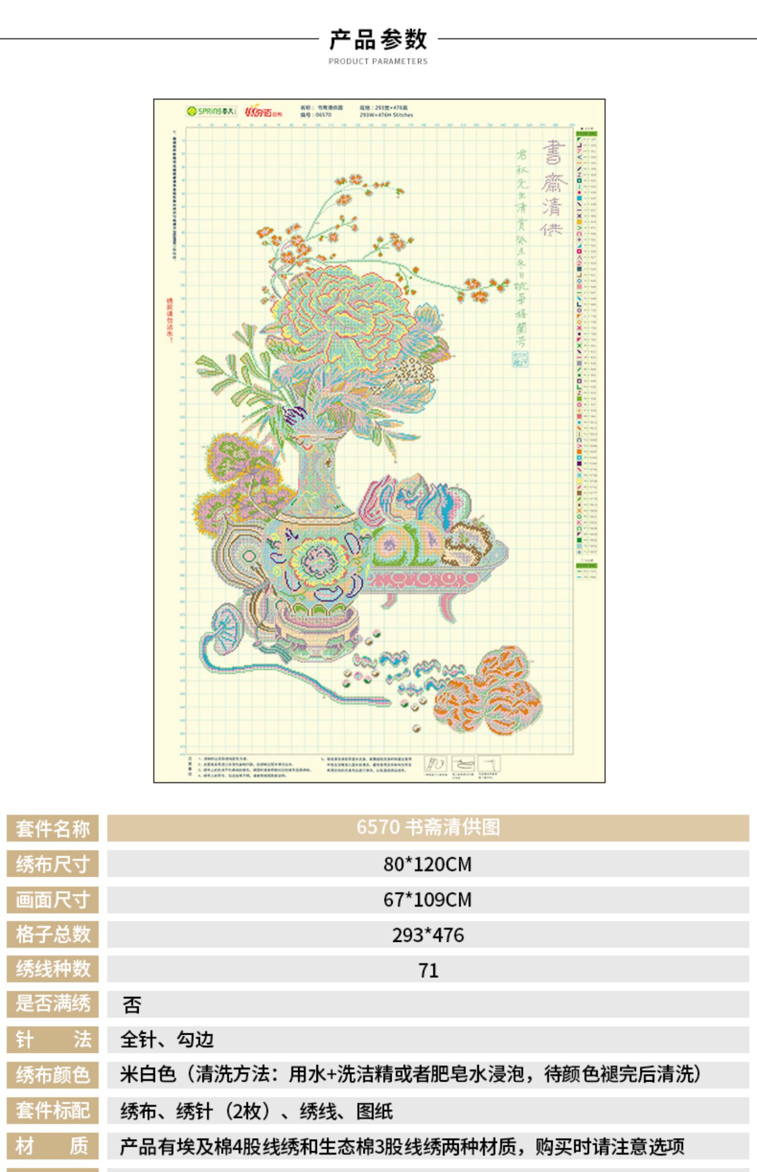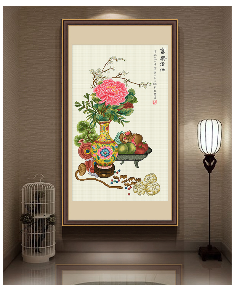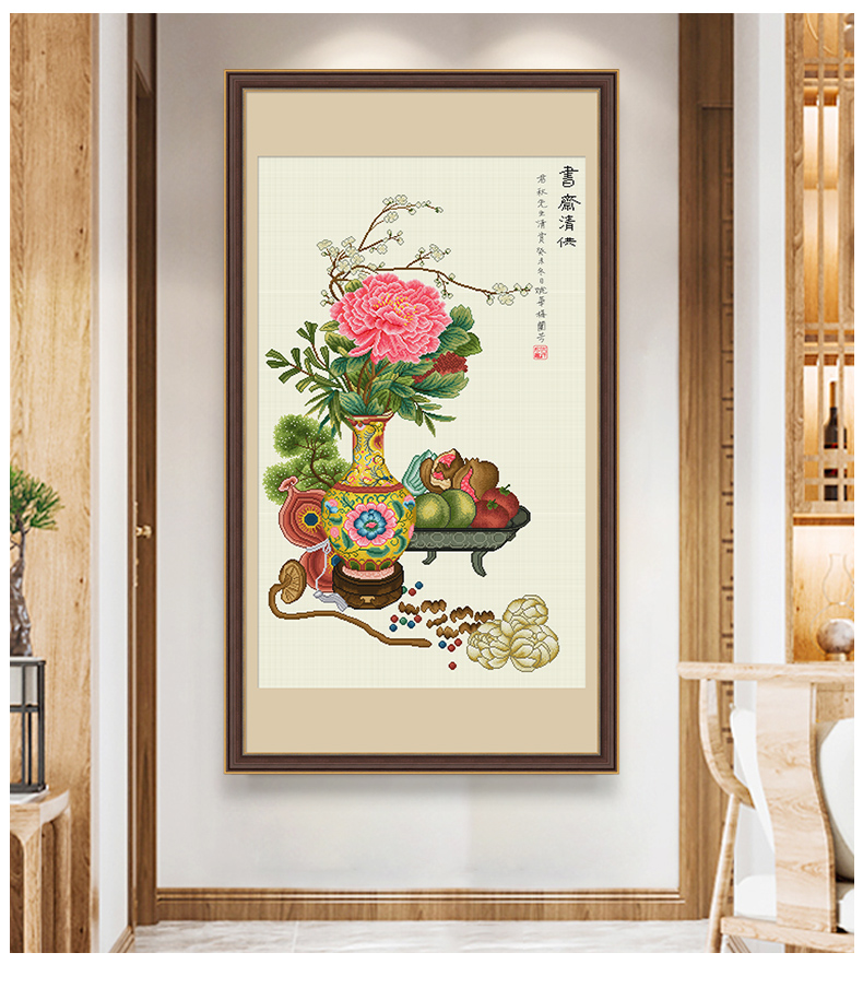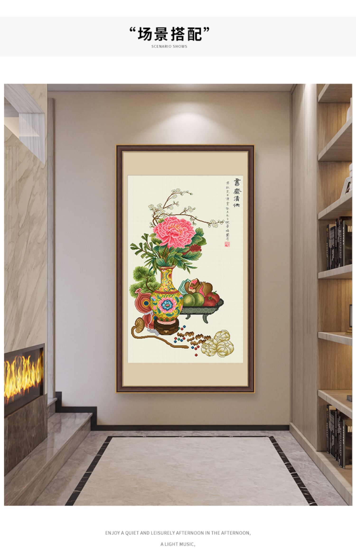 春天十字繡書齋清供圖豎版2023新款線繡中國風客廳玄關手工自己繡