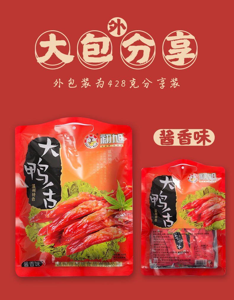 溫州特產初旭大鴨舌凈428克 醬香辣味鴨舌頭即食小吃零食送禮年貨