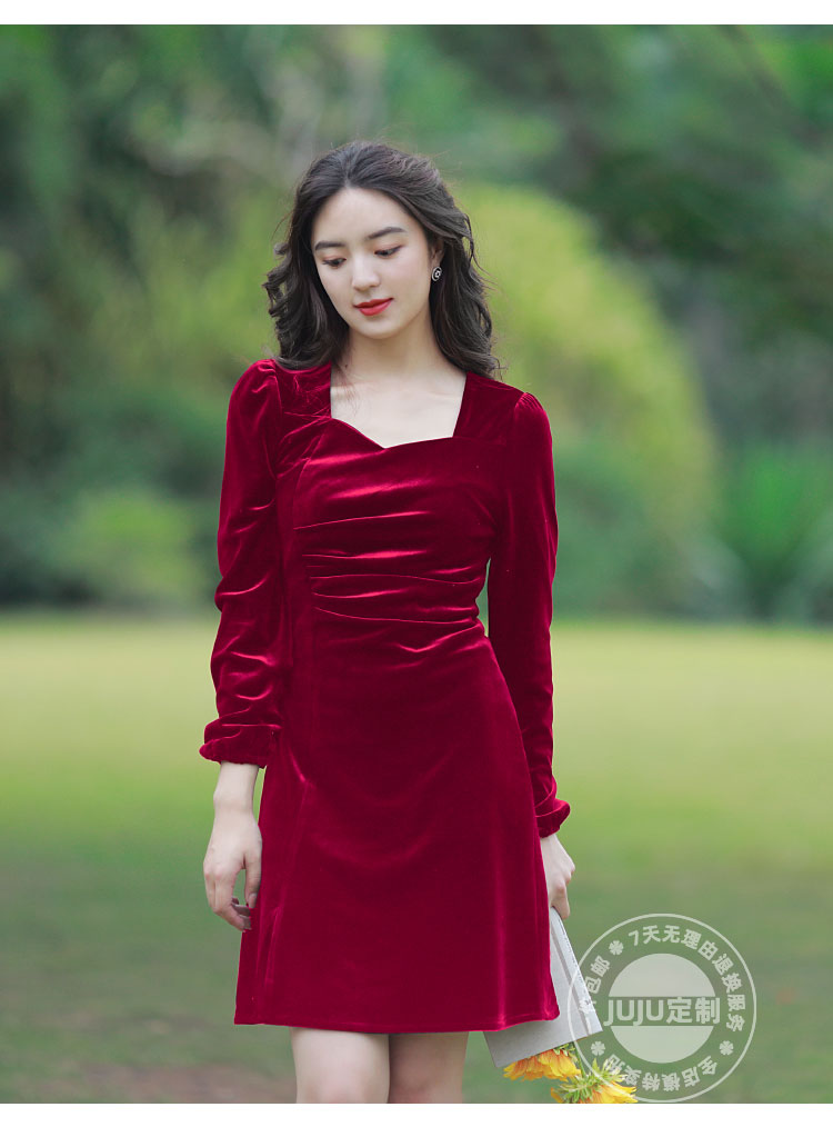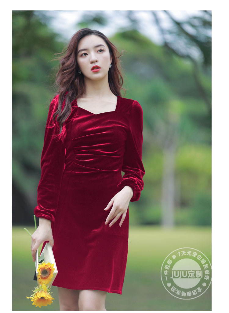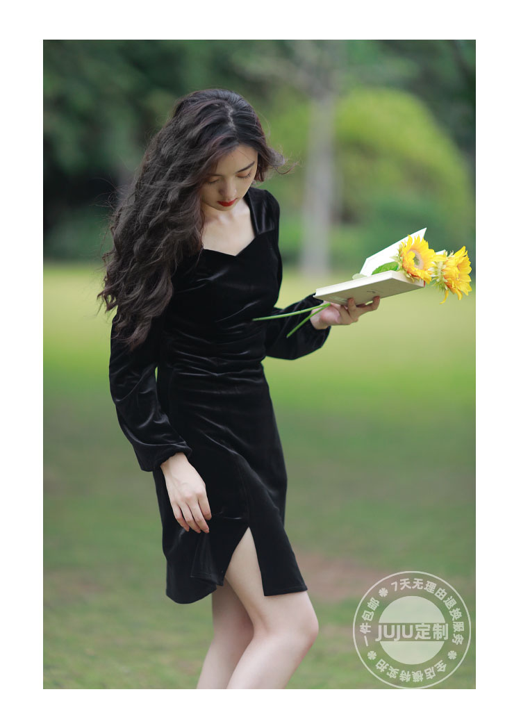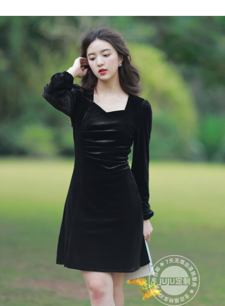 赫本小黑裙2022新款秋冬連衣裙黑色絲絨打底方領法式復古小個子女