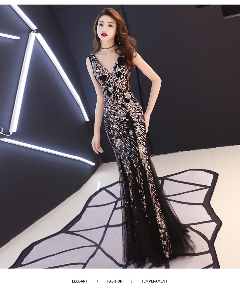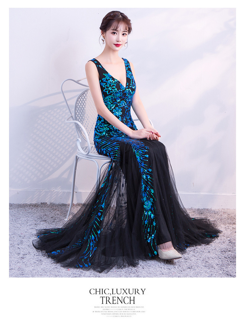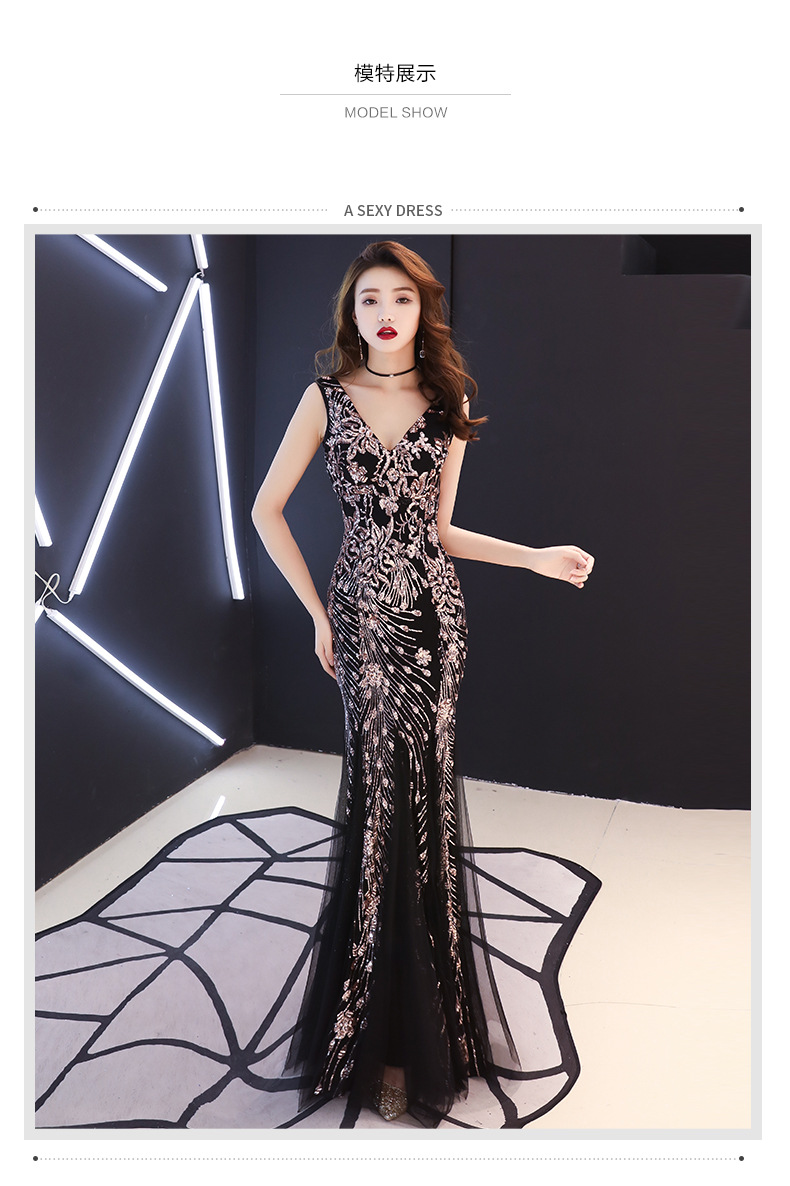 晚禮服女宴會高貴氣質優雅主持人舞臺年會晚會長款魚尾亮片連衣裙