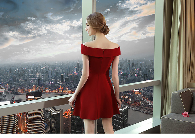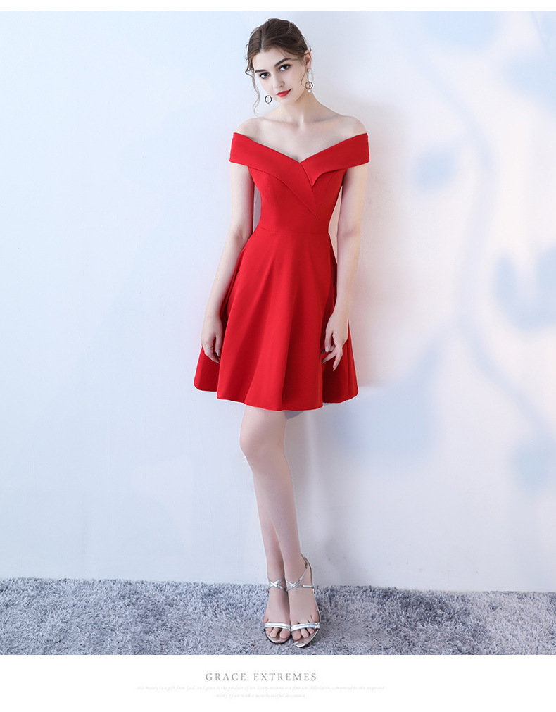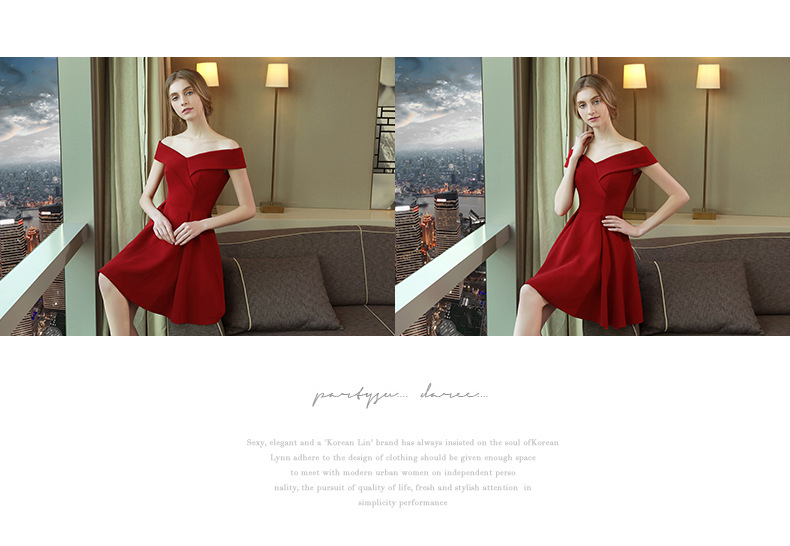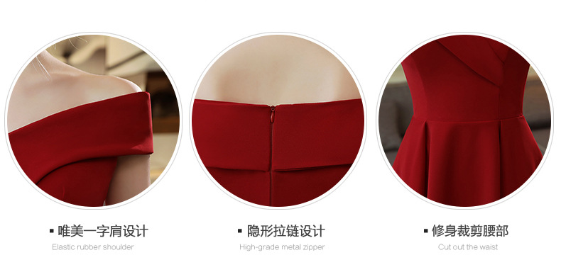 婚禮新娘婚宴結婚敬酒服訂婚年會聚會一字肩顯瘦宴會晚禮服連衣裙