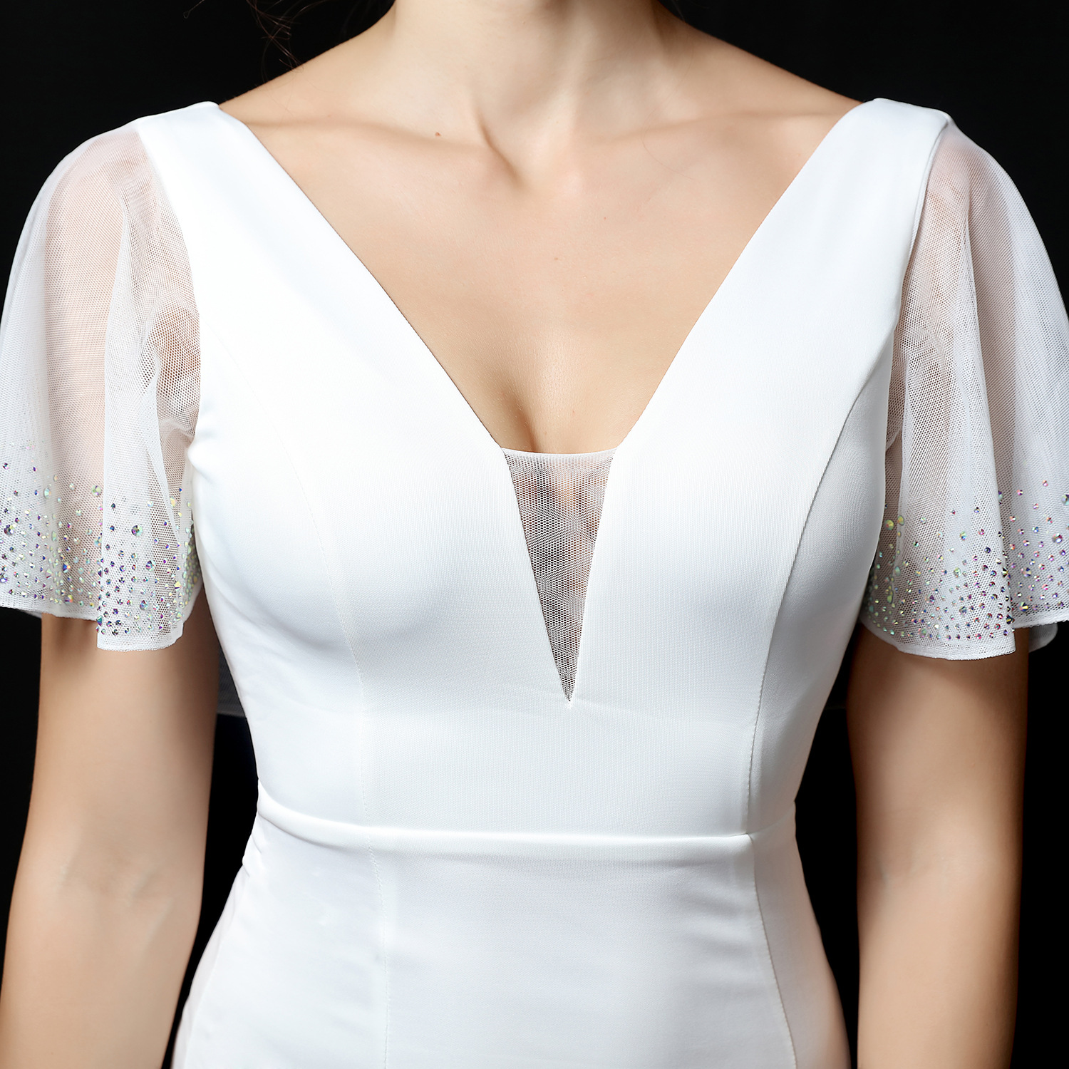 一字肩白色禮服日常可穿訂婚連衣裙端莊大氣敬酒服領證登記小白裙
