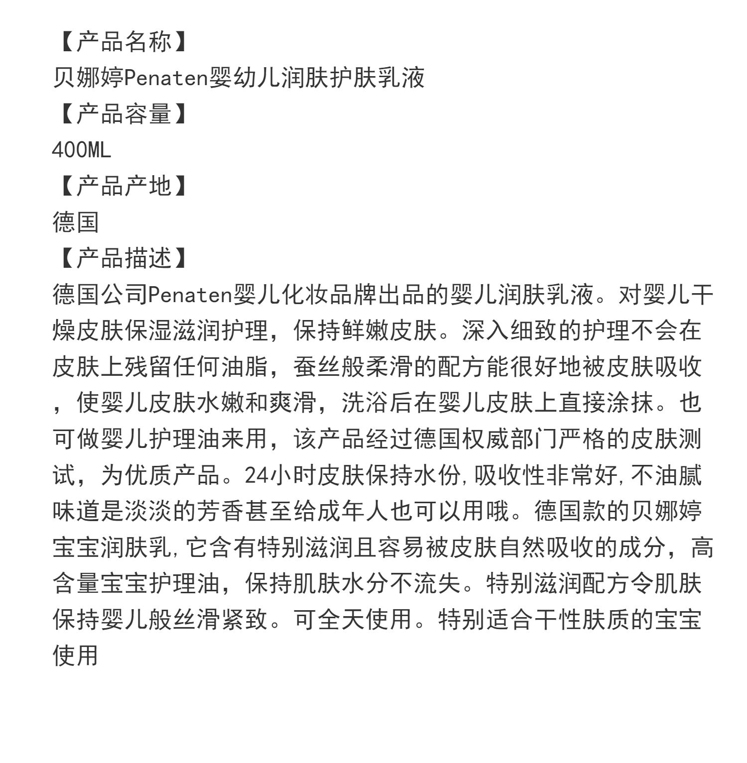 德國Penaten貝娜婷潤膚乳液新生嬰兒身體乳兒童保濕補水滋潤全身