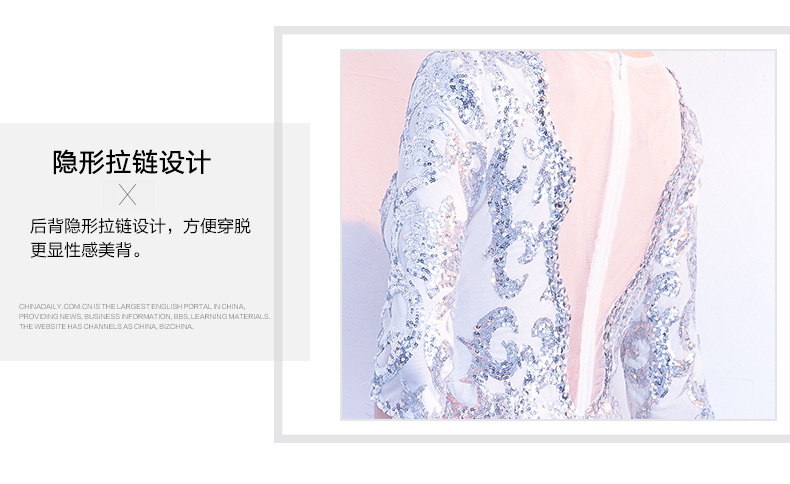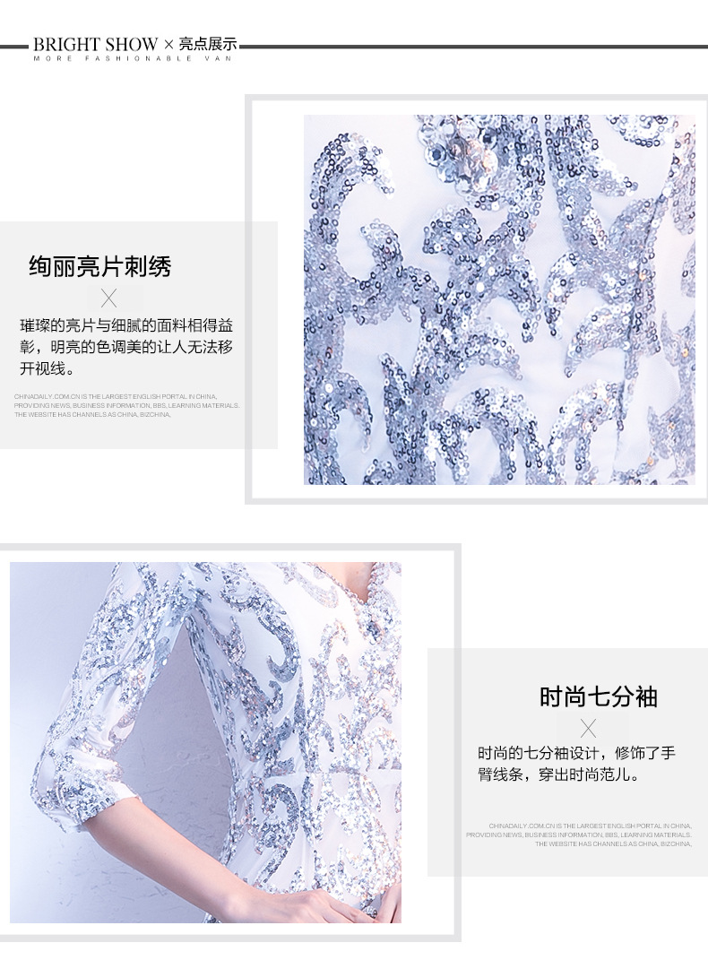 輕奢質感韓國絨十珠片長袖女晚禮服