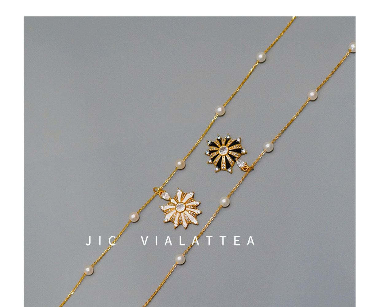 Jic Vialattea小眾原創設計感輕奢黑白色愛心琺瑯滿天星珍珠項鏈