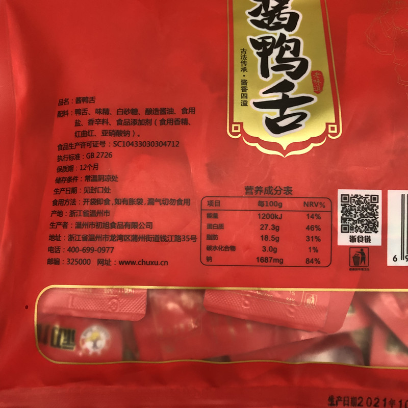 溫州特產初旭散裝毛重500g醬鴨舌頭